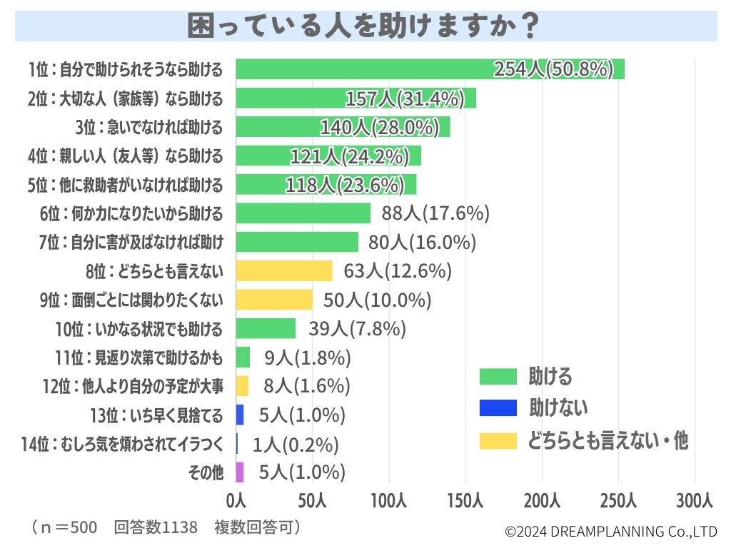 ★ 1位:自分で助けられそうなら助ける 254名(50.8%) ★