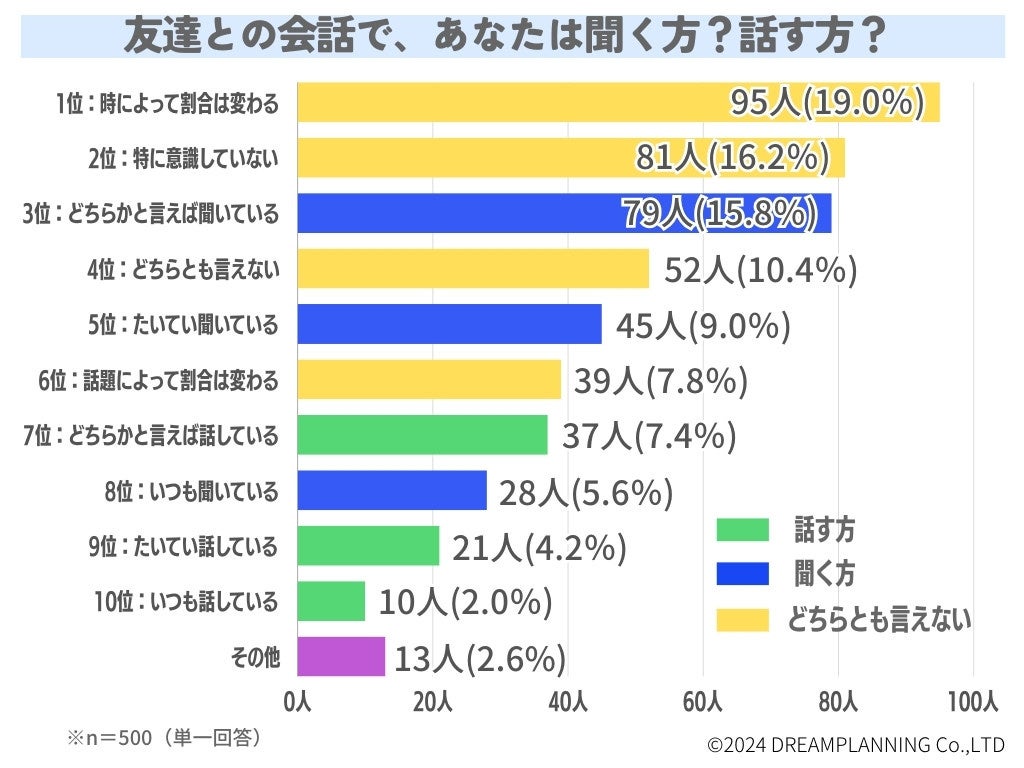 友達と話す時はたいてい聞き役に回っているという方も少なからずいました。