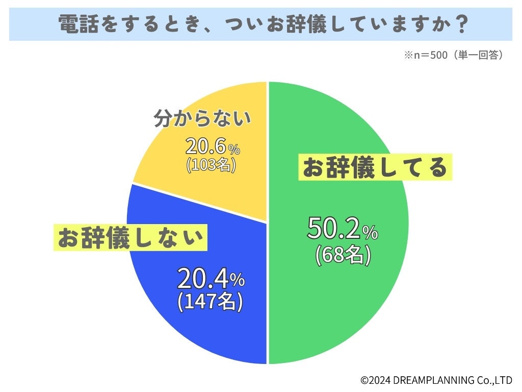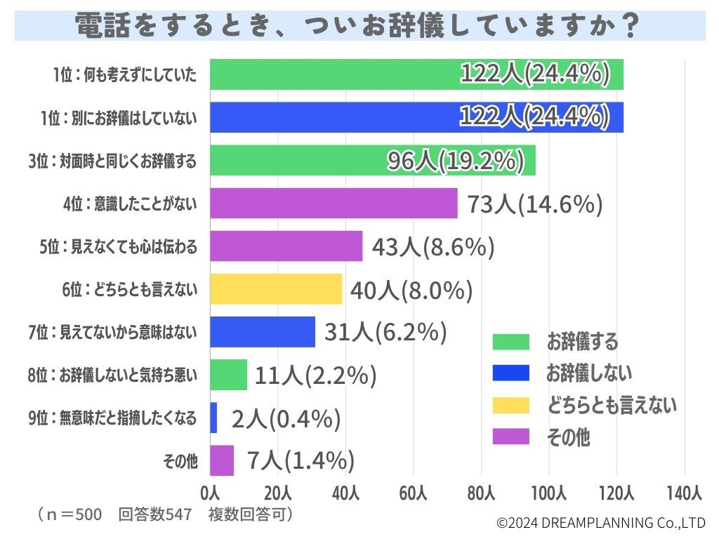 日本人らしいといえば、電話でお辞儀しちゃう光景。お辞儀をするかしないかについては、半数以上がお辞儀をするという回答でした。
