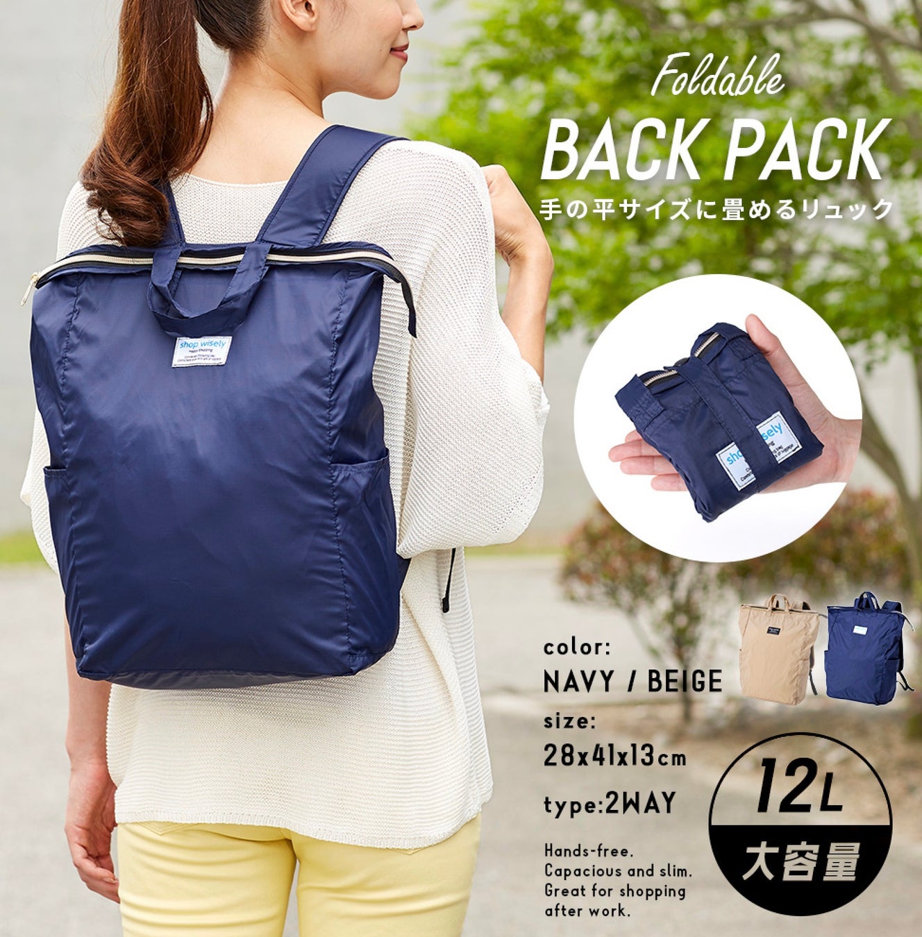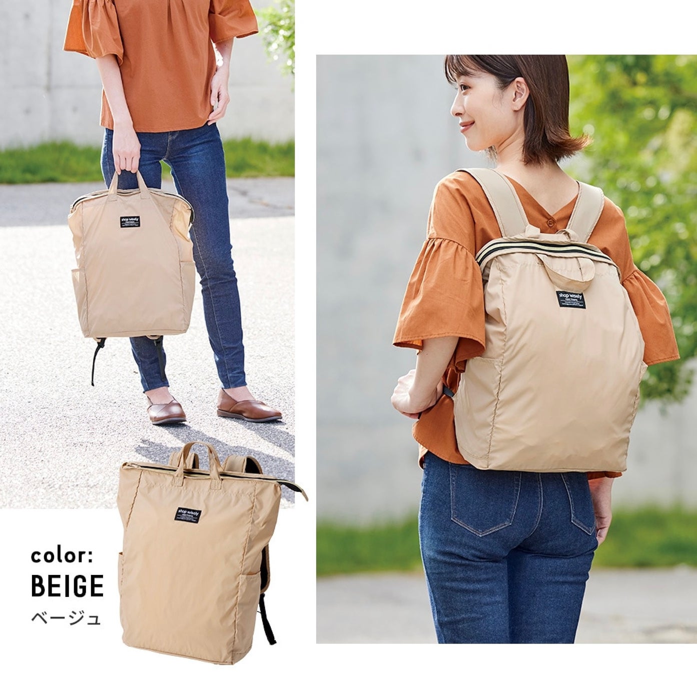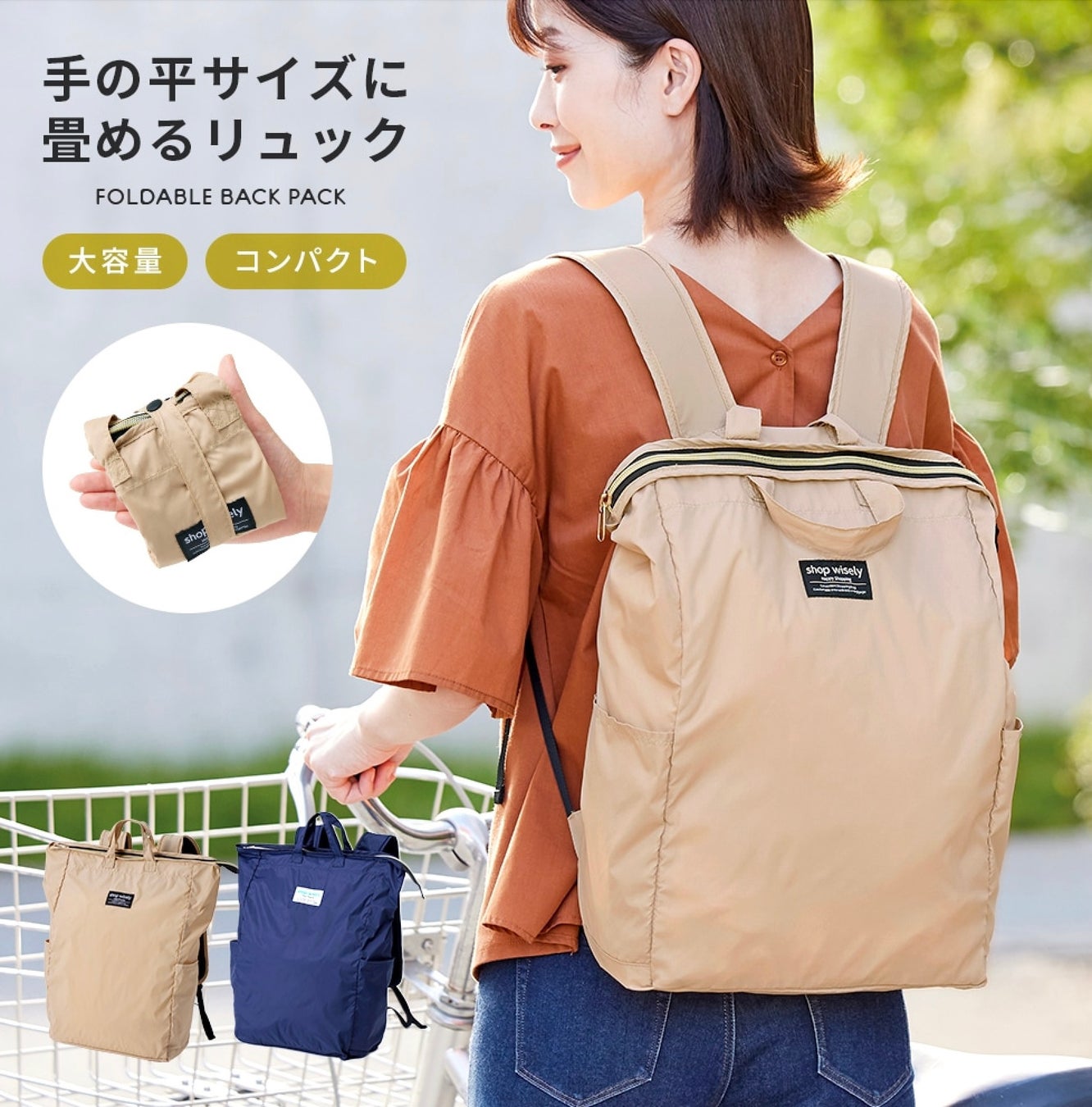 くるっと畳んでコンパクト、広げてたっぷり収納!好評中のリュックに新色が新登場!「手の平サイズに畳めるリュック ベージュ」発売中