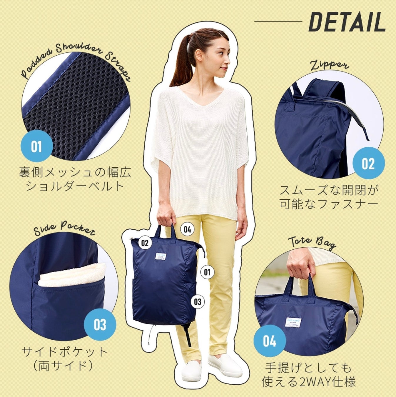 クルッとたためてパッと使える!持ち運びに便利なお買い物リュック。食い込みにくくムレにくい、