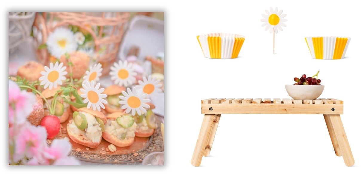 お店で買った食材や、手作りのお弁当などにピックをさすだけでかわいく変身!カップにはおつまみを入れて。1つは持っておきたいテーブルは持ち運びできるミニサイズ。