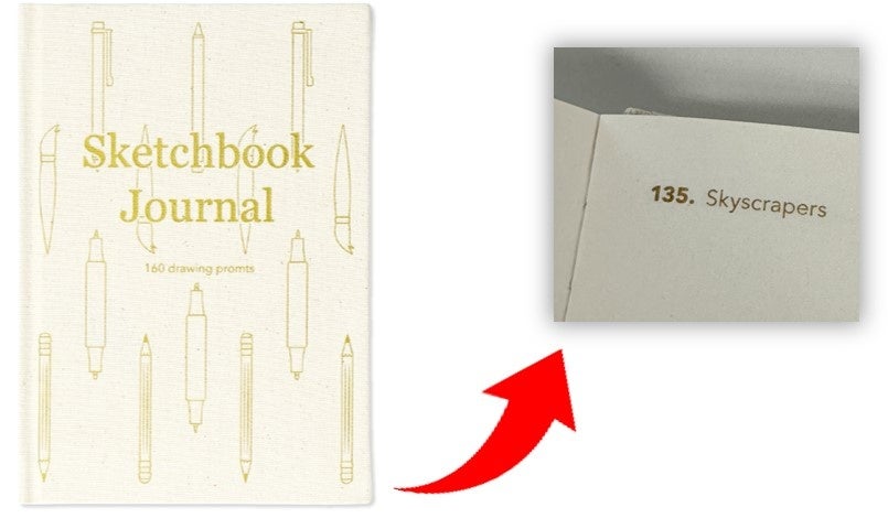 リネンカバーがオシャレなのA5サイズの手帳には、160ページのユニークなお題が!例えば「Skyscrapers(高層ビル)」自分の思い描くビルを描いてみよう。