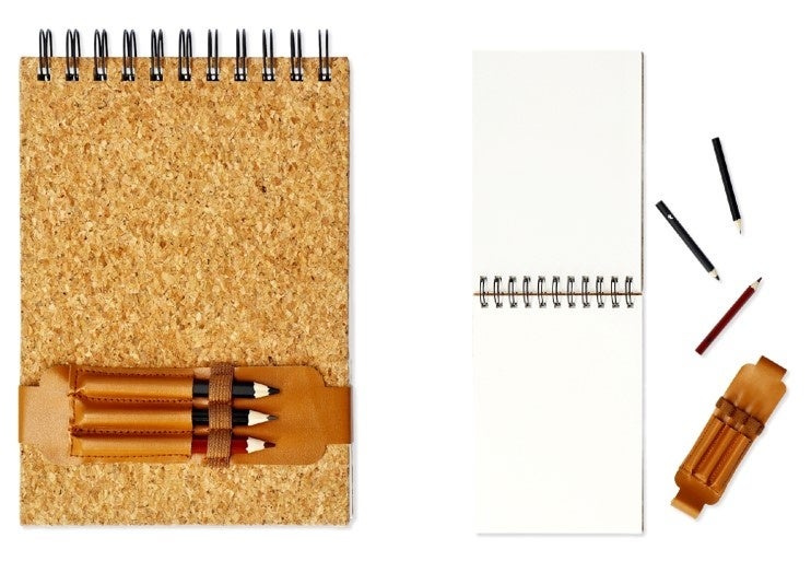コルクの表紙が良い感じ。アースカラーの色鉛筆で、自然の絵を見たままに描いてみて。
