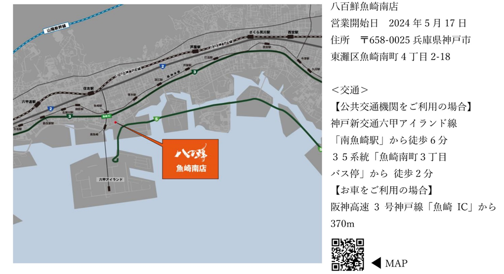 さて、この度「八百鮮魚崎南店」を兵庫県神戸市東灘区に出店いたしますのでご案内申し上げます。