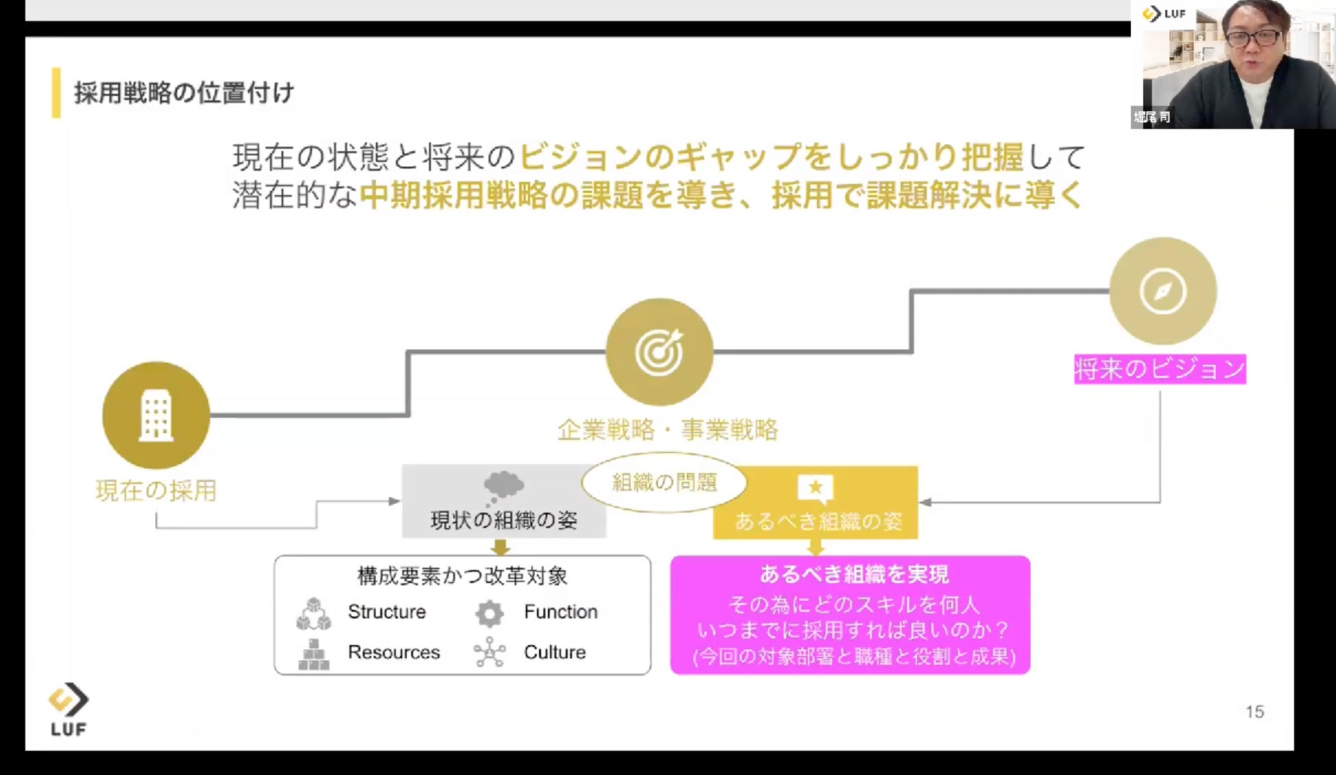 LUFでは、採用戦略の作り方と必要な要素について解説をさせていただきました。