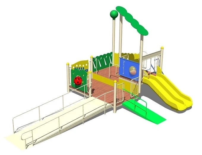 歩行困難な方でも利用できる手摺りのあるスロープ付きの遊具です