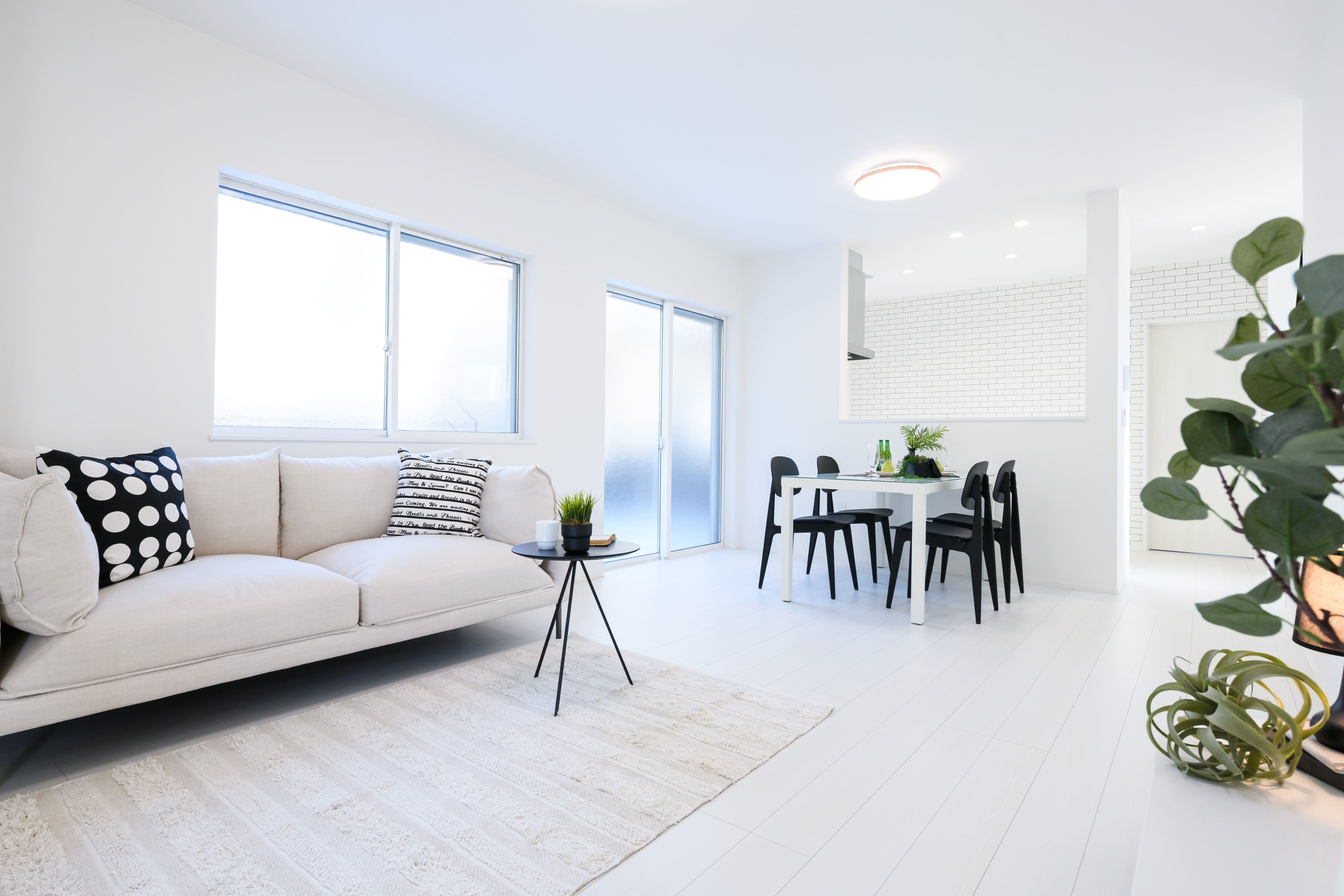 明るいリビング:マンションライクな2階リビングや白を基調とした明るいLDK