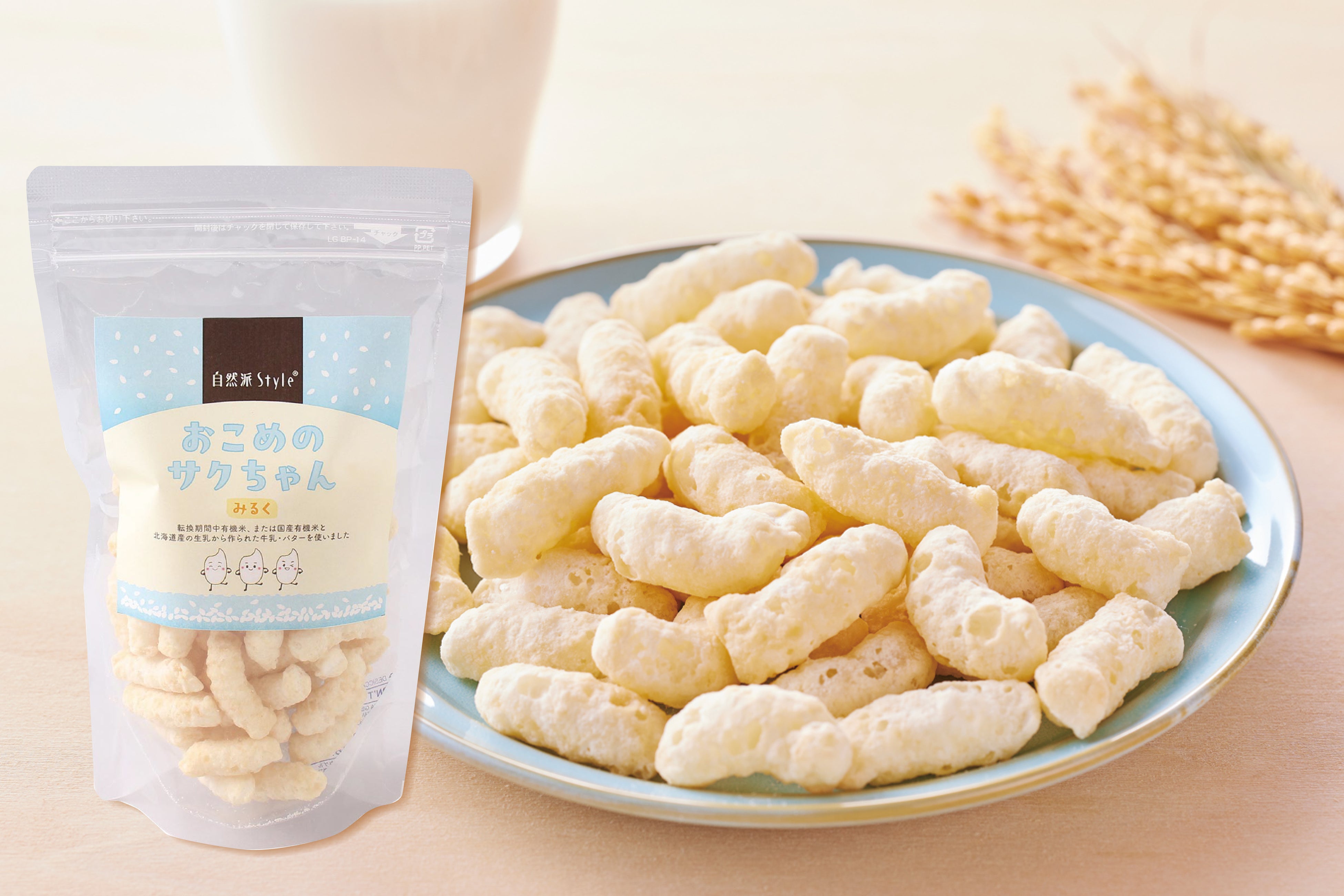 【子どもに食べてほしい、お米のお菓子】自然派Styleから、お米のパフ菓子が新登場。お米×ミルク!ふわっサクッ食感とミルクの味わいをお楽しみください。