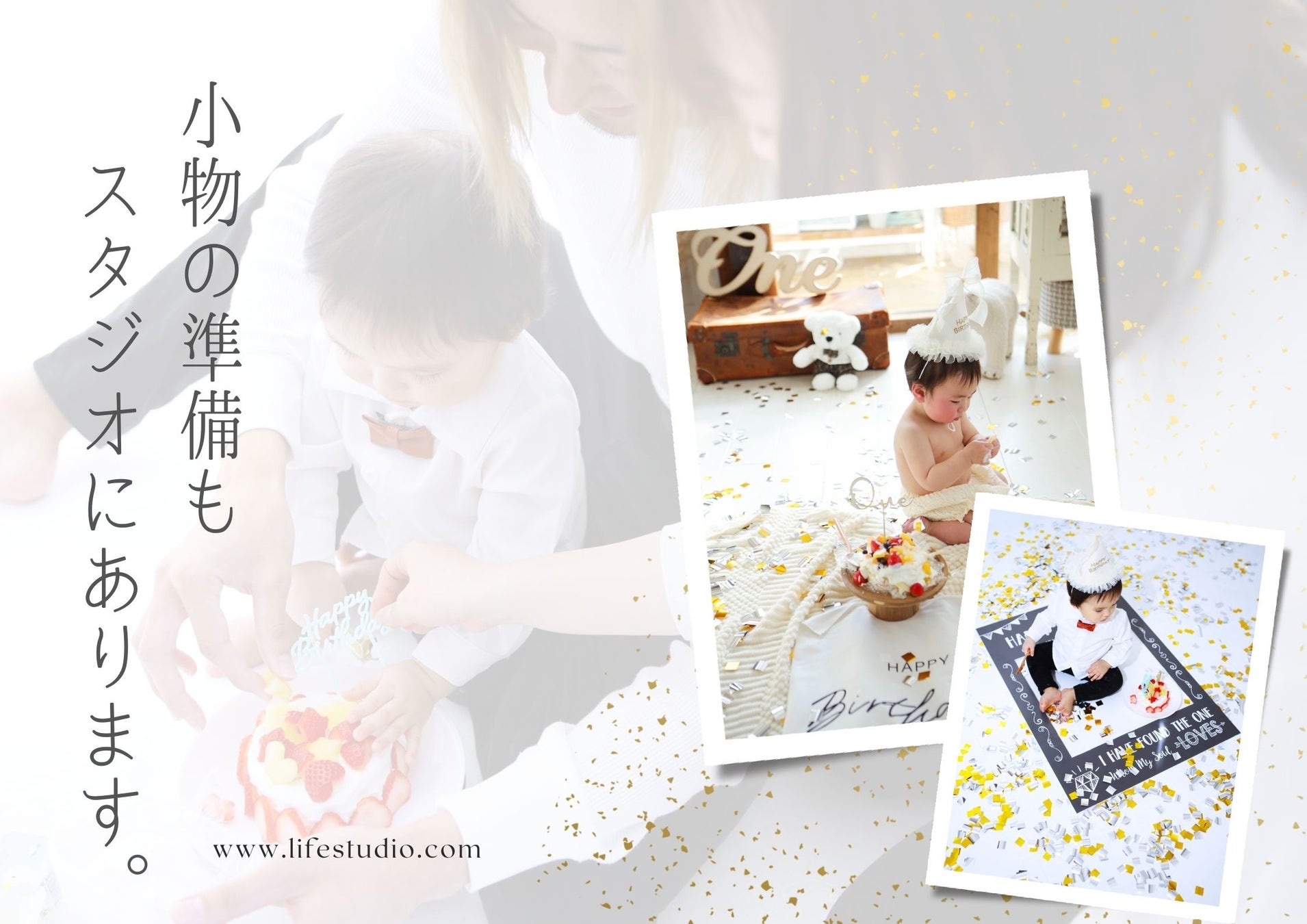 ライフスタジオでの撮影は3シーン、85カットお渡しになるので、スマッシュケーキ撮影以外も撮影いただけます。