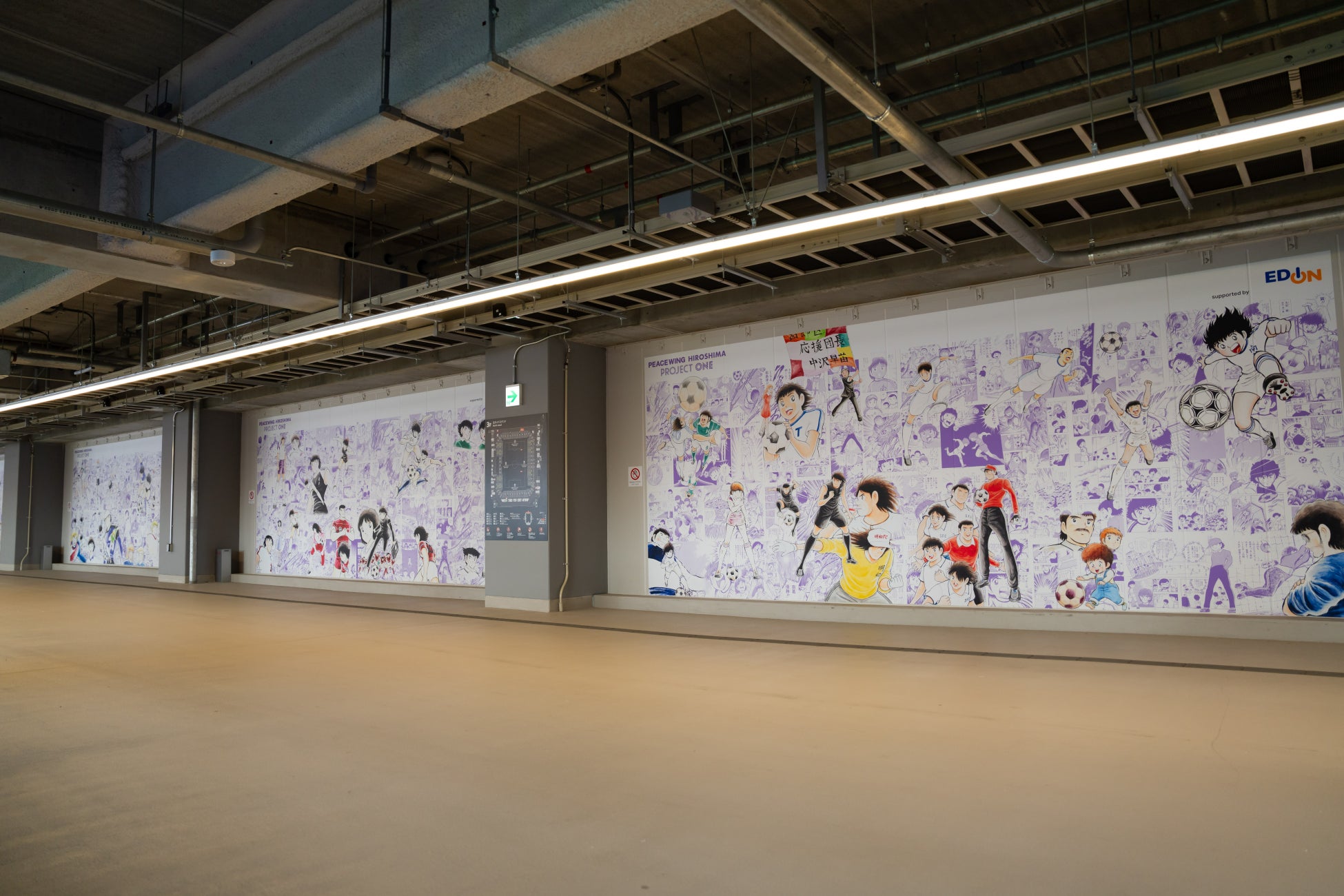 第二弾の「Dream Wall」は、『キャプテン翼』のテーマとスタジアムの「スポーツの力・夢・世界平和」というテーマがちょうど合致していたこともあり、同じ想いの元、『キャプテン翼』の世界観を大きな壁に描くことが出来ていると思います。「Dream Wall」には世界中の選手たちがプレーしているところをコラージュしているので、壁画を通して皆様に「スポーツの力・夢・世界平和」という3つの想いが伝わればと思っています。