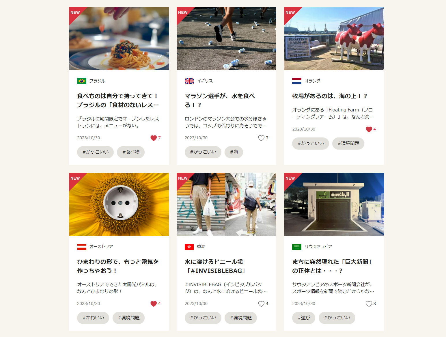 それぞれの記事には内容に関連する言葉がタグ付けされていて、子どもたちは自身の興味にあわせ「#環境問題」「#未来」「#かっこいい」といった言葉から関連する記事や用語を探せるようになっています。