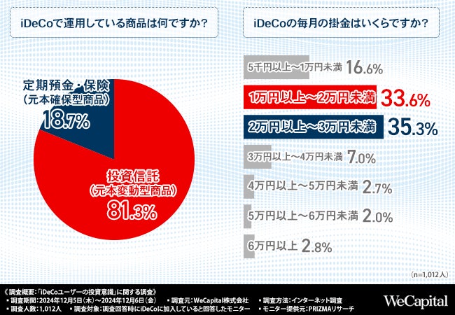 『ヤマワケ』(https://yamawake.jp/)の運営会社であるWeCapital株式会社(本社所在地:東京都港区、代表取締役:松田 悠介/橋口 遼)は、iDeCoに加入している方を対象に、「iDeCoユーザーの投資意識」に関する調査を実施しました。