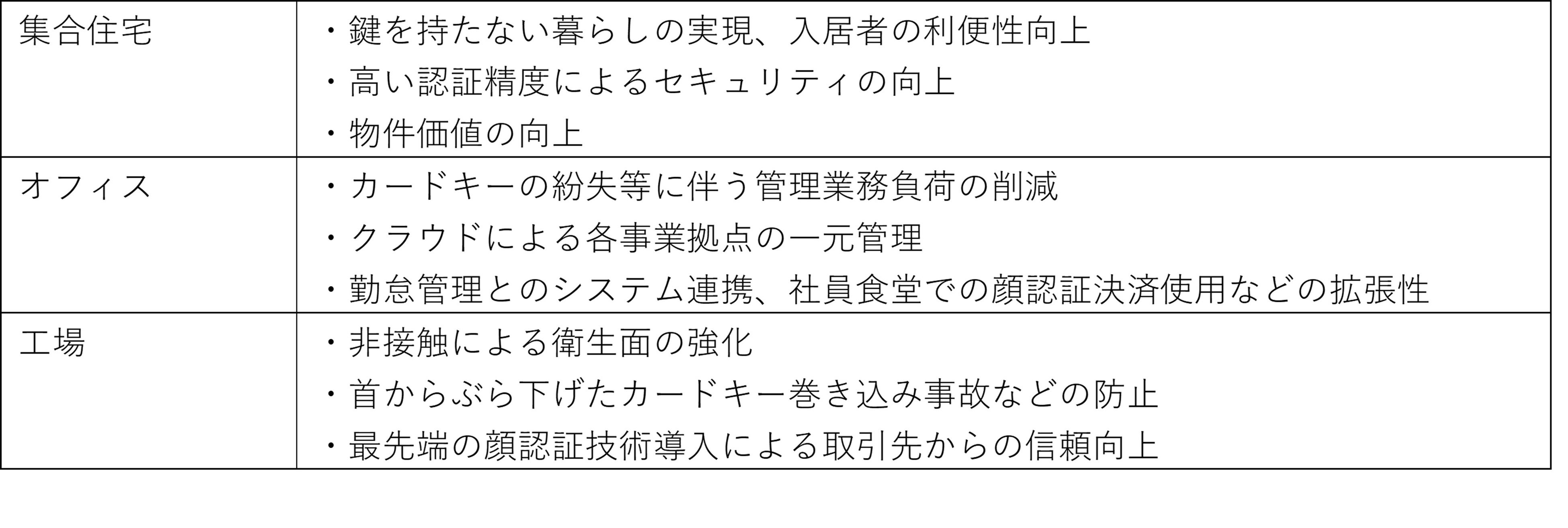 特に集合住宅向けには、エントランスやエレベーターなどの共有部から各専有部まで、鍵が一切いらない「オール顔認証マンション」を国内初で実現しています(2024年3月末時点実績:42棟)。
