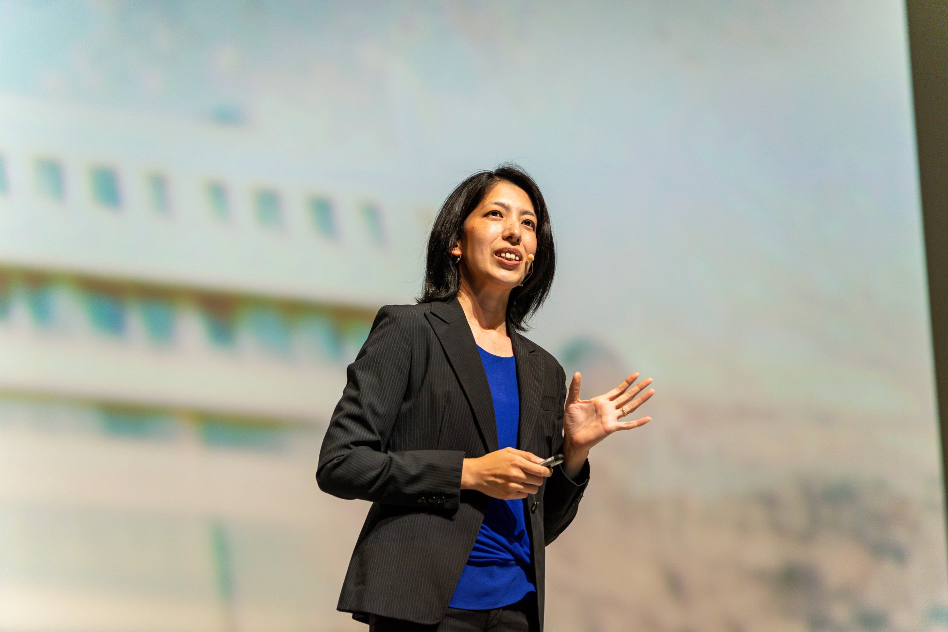 Meta Osakaが企業や自治体と連携して取り組んできたメタバース技術を活用したリアルイベント(デジタルツイン)の実例をシンポジウム形式で発表。前半では、Meta Osaka代表の毛利英昭、こども万博実行委員長の手塚麻里がそれぞれスピーチを行い、これまでの取り組みと成果を報告しました。