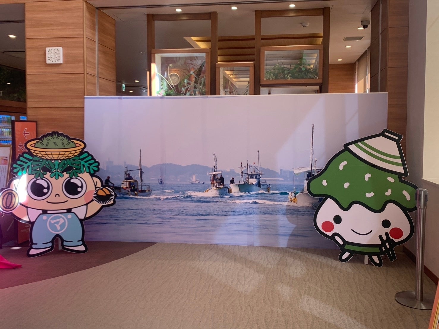 期間中は、アカモクの海藻風呂に、アカモクのゆるキャラ「あかもっくん」のヒノキプレートが浮かぶコラボ風呂に入れます!