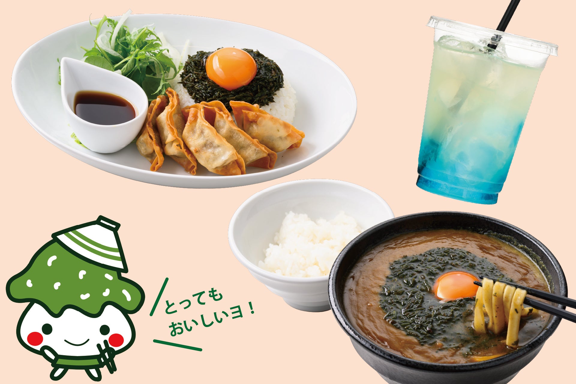 アカモクを使用した各種メニューや海をイメージしたドリンクなど、本店と門司店それぞれの限定メニューを用意しています。