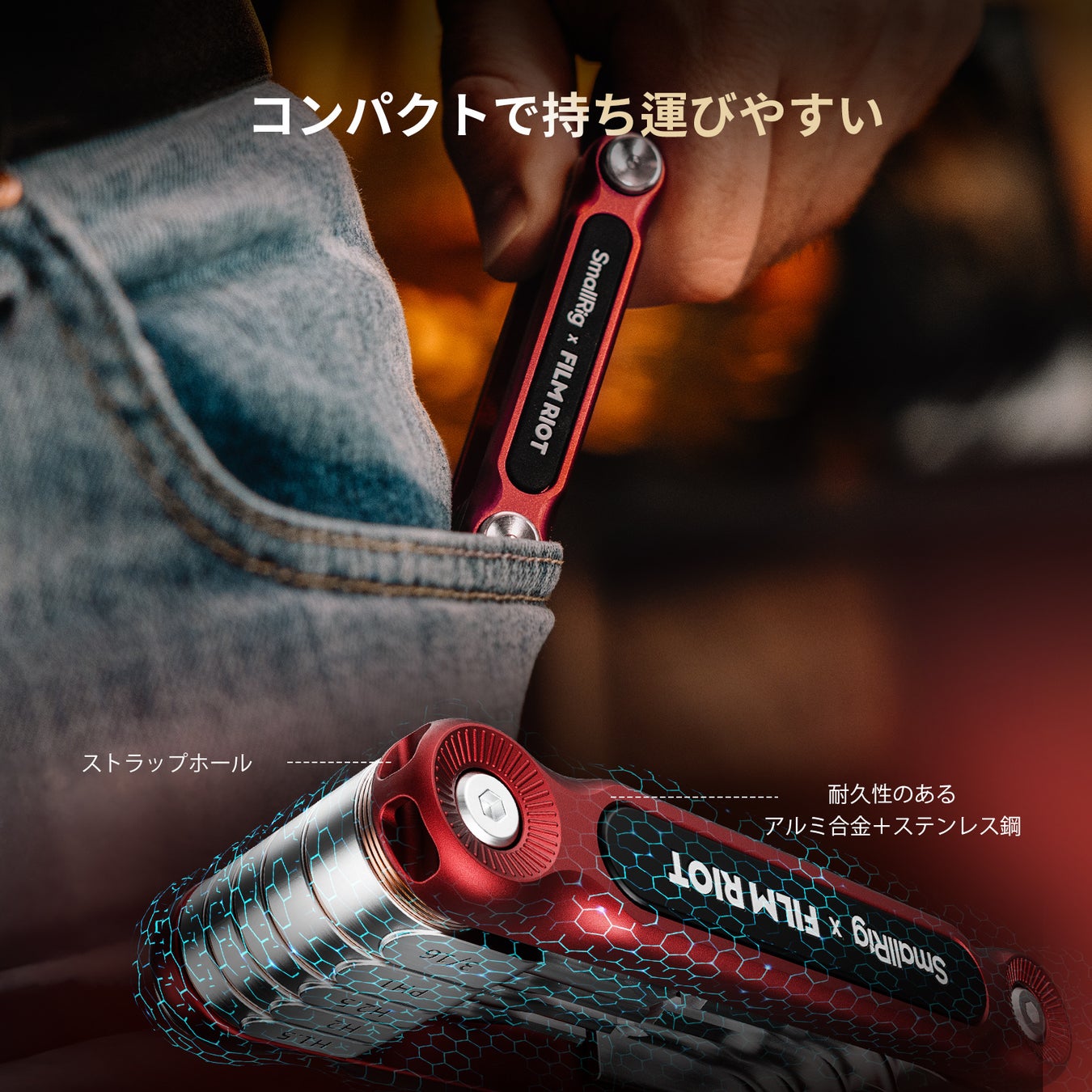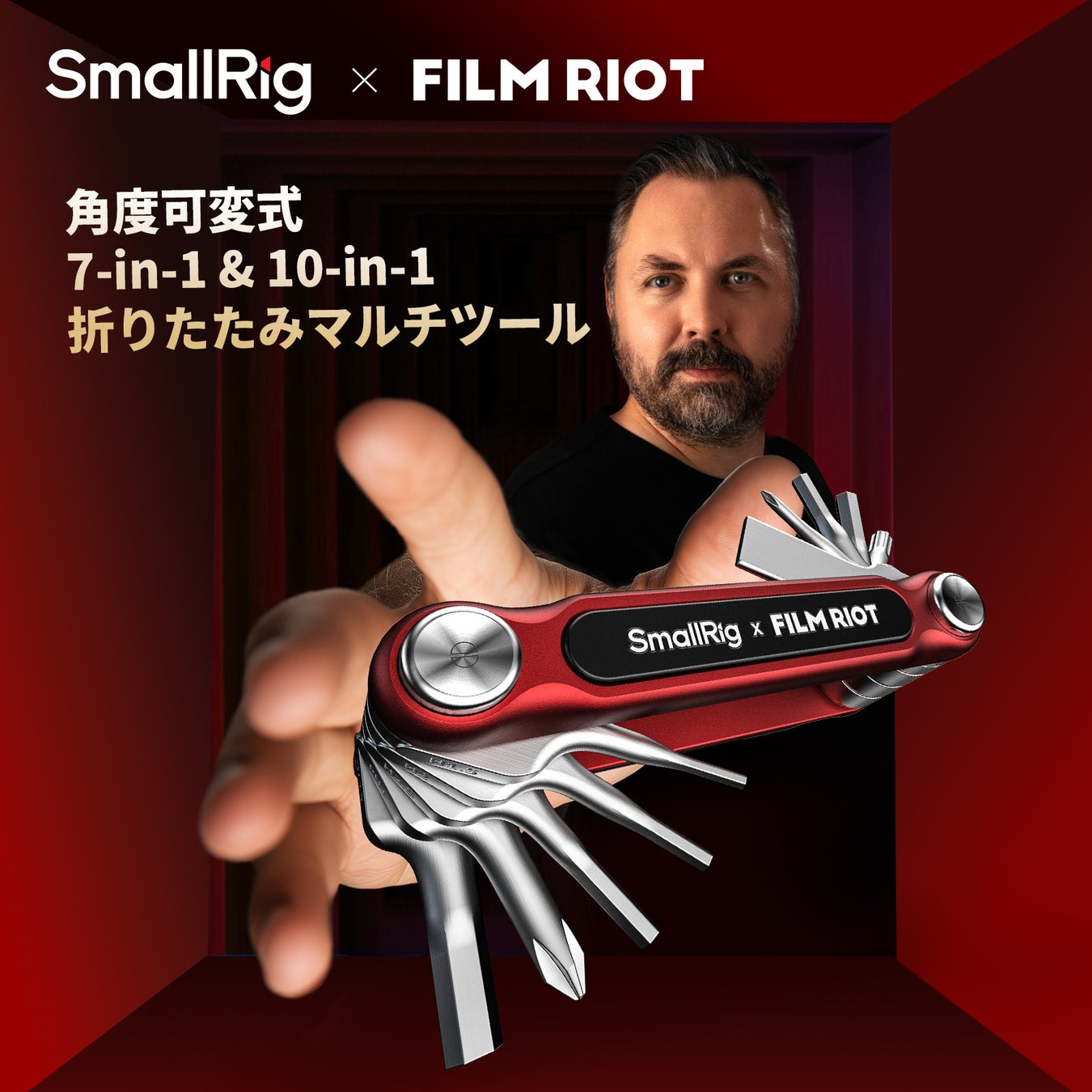 「SmallRig X FILM RIOT」角度可変式7-in-1&10-in-1折りたたみマルチツールは、@FILM RIOTと共同設計した製品です。YouTube上で最も初期かつ最大の映画制作指導チャンネルの1つである@Film Riotは、何百万人もの忠実なファンを抱え、映画製作の分野で高い影響力を持ち、映像制作における先駆者です。「小さなリグ、大きな夢」を出発点として、今回の「角度可変式7-in-1 & 10-in-1折りたたみマルチツール」を共同設計しました。