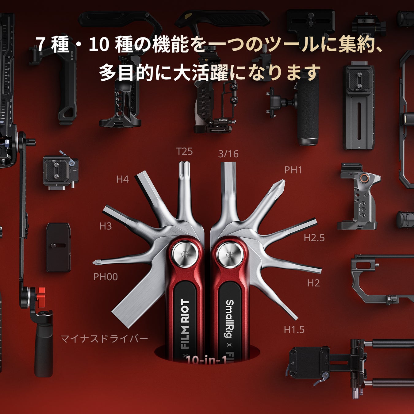 「SmallRig X FILM RIOT」角度可変式7-in-1折りたたみマルチツール