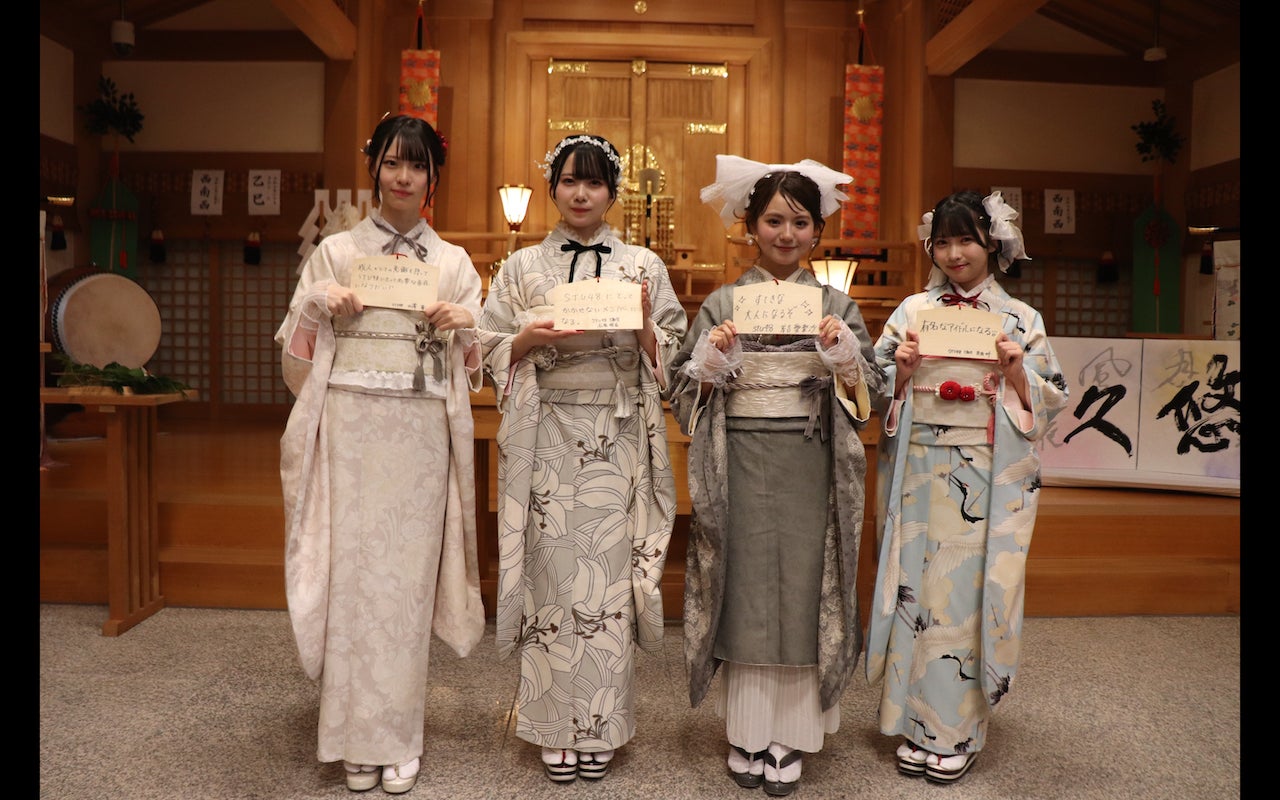振袖に身を包んだ20歳を迎えたメンバー4名がそれぞれの願いと決意を胸に成人奉告祭に参加!