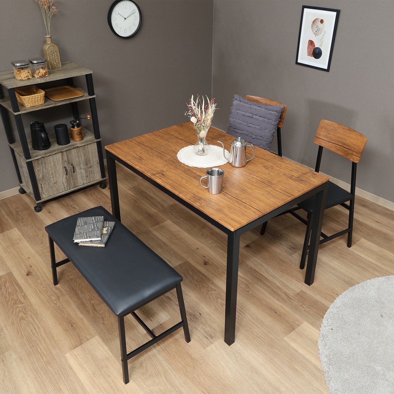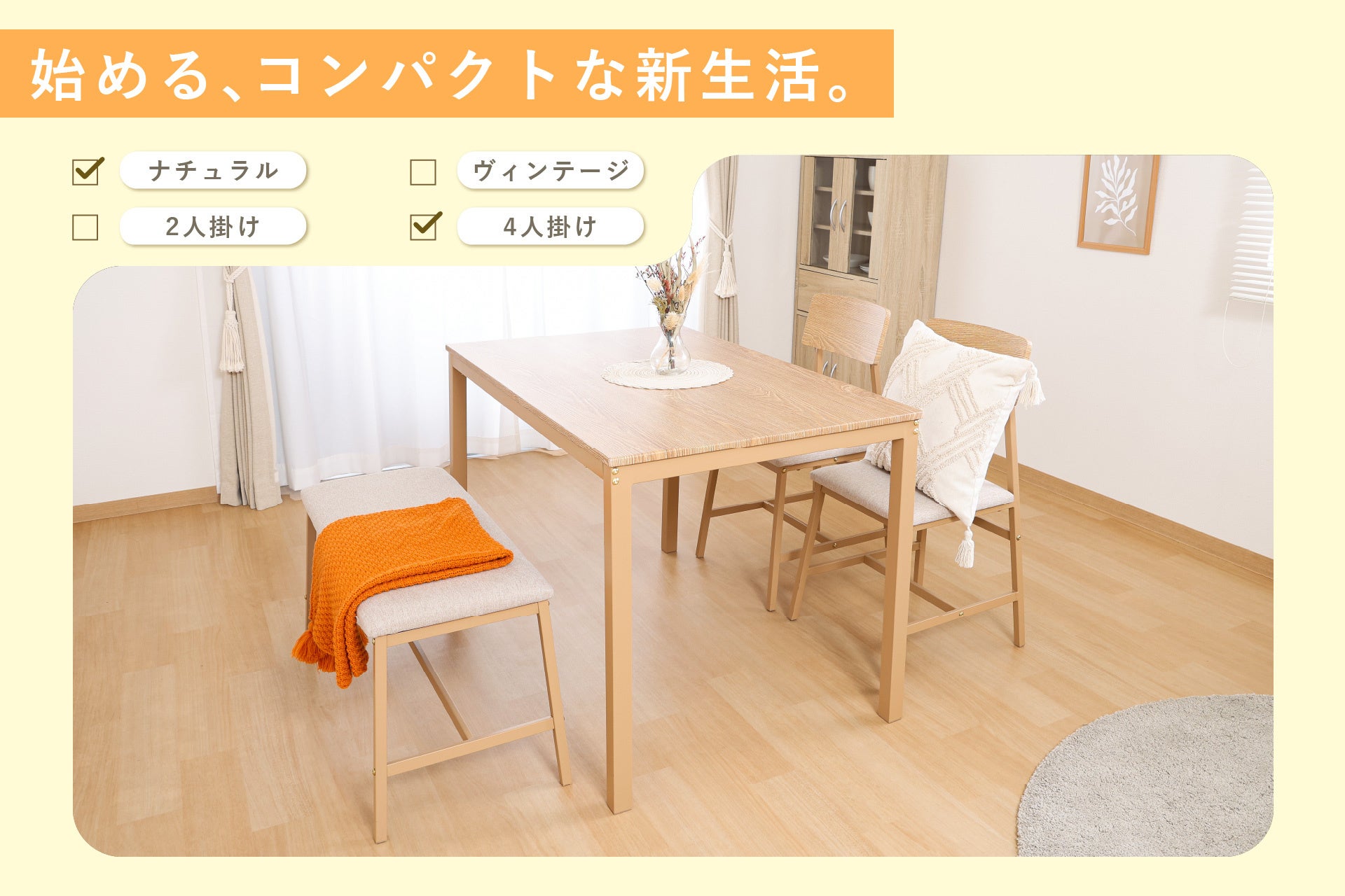 2人掛けタイプにはチェアが2脚、4人掛けタイプにはチェア2脚とベンチが1脚付属しています。どちらも座面シートにはウレタンを使用しているため、クッション性があり快適な座り心地です。