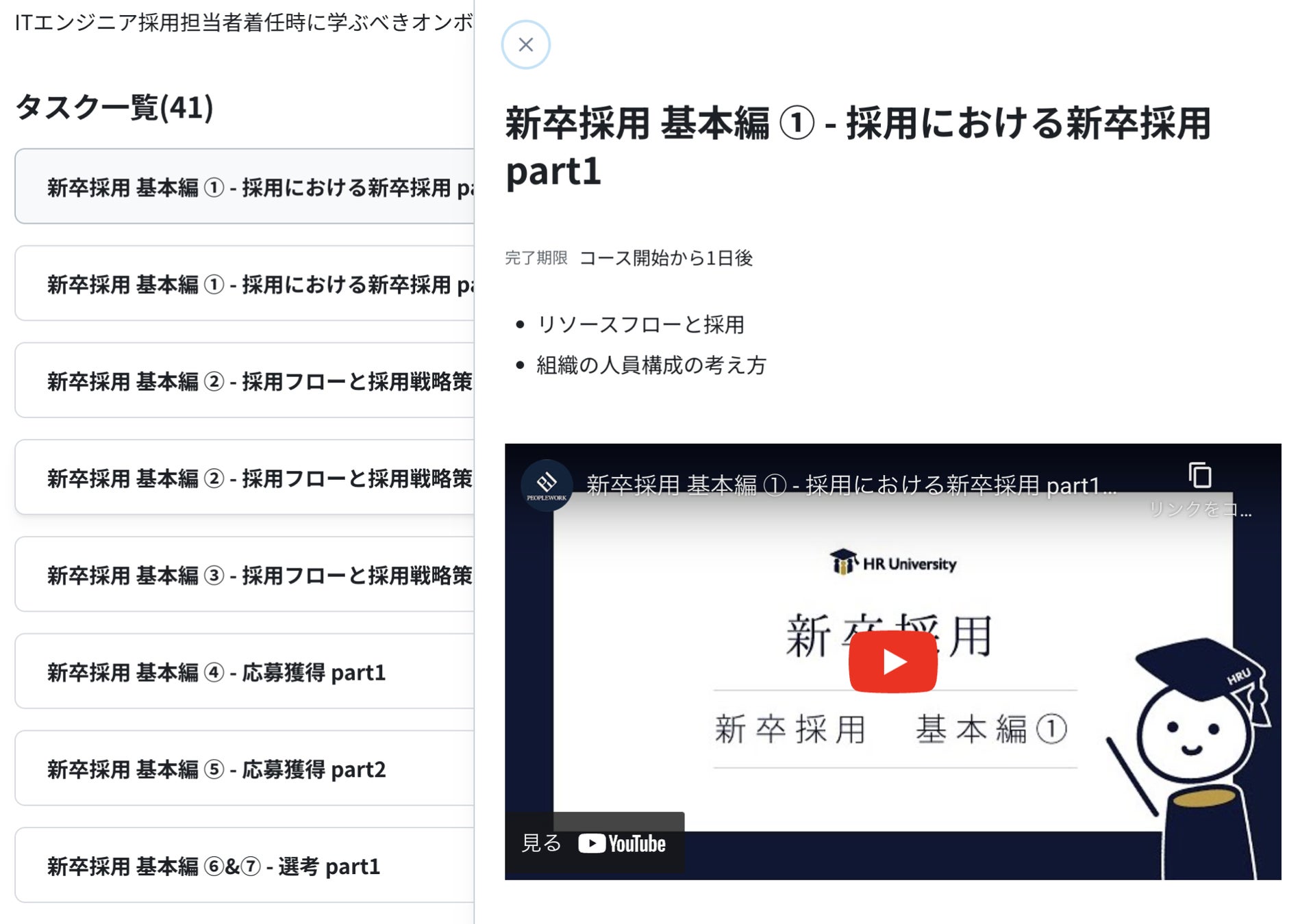 このたび、Hajimari社が提供する「伴走型」eラーニング動画研修サービス「HR University」より、採用・人事評価分野のコンテンツを有料で提供開始することになりました。40個以上にわたるタスクを順番に進めていくことで、採用や人事評価について体系的に学ぶことができるナレッジコンテンツになります。