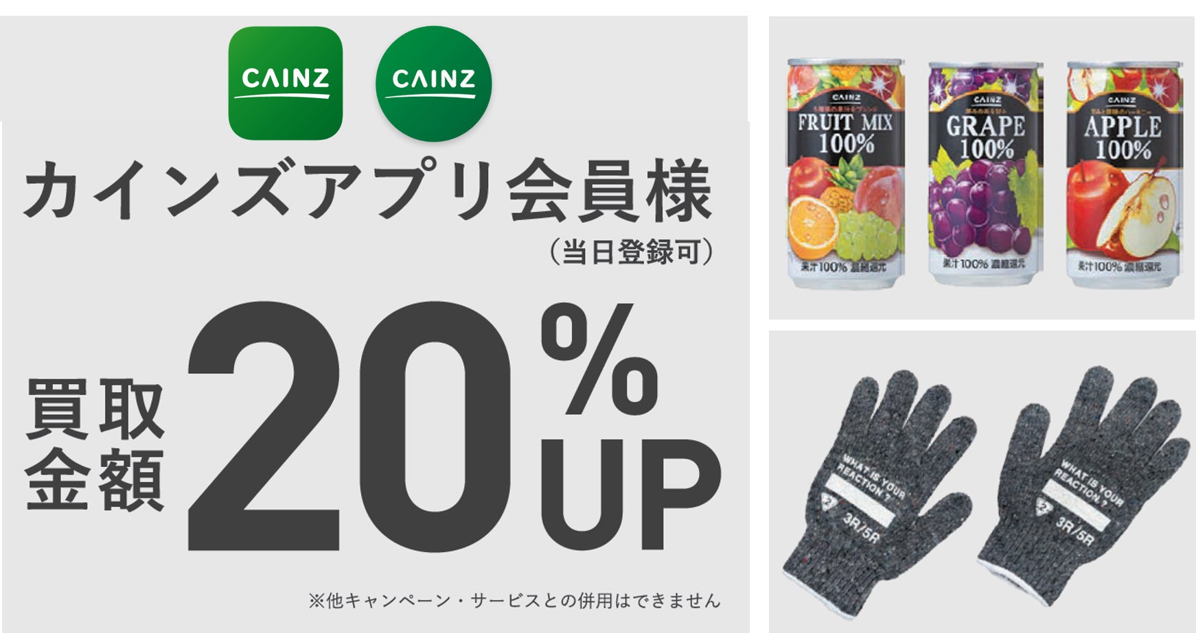 ・カインズアプリ会員さまを対象に、買取金額を20%アップ(※1)