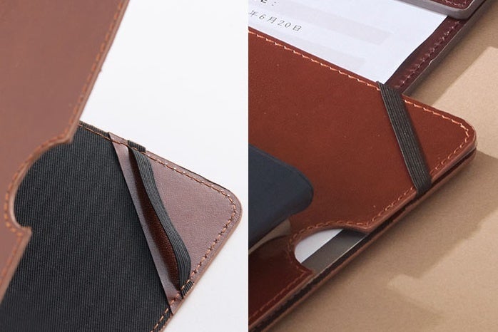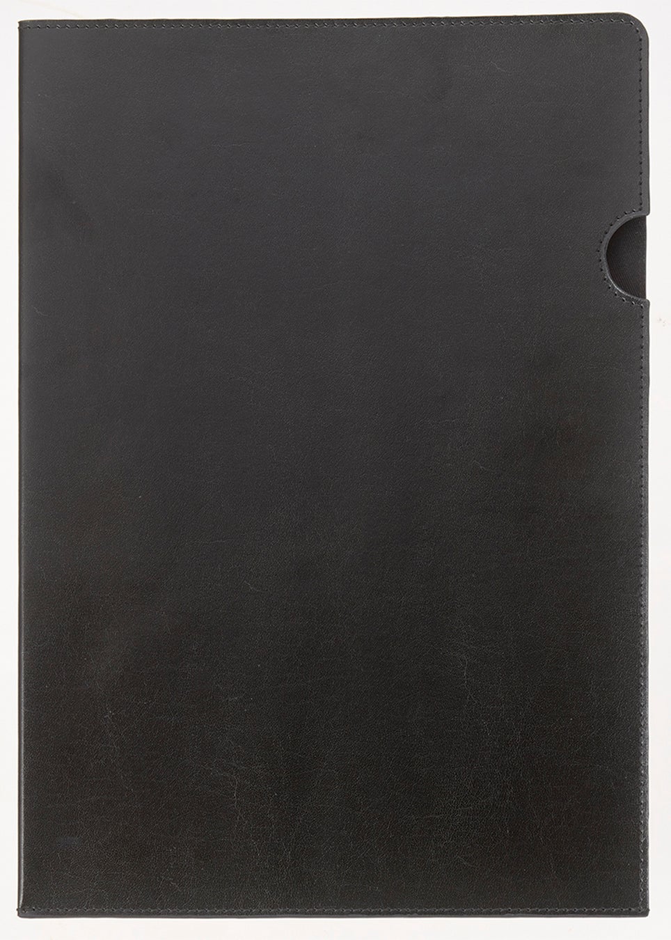 クリアファイルをそのまま収納できる設計に加え、機密書類なども外から見えない安心仕様。上部の角にはゴムバンドが付いており、移動時も中身をしっかりとホールドします。