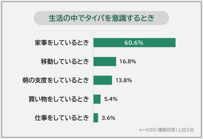 タイパは特別なシーンではなく、家事や朝の支度など、日常生活の中で頻繁に意識されていることがわかりました。