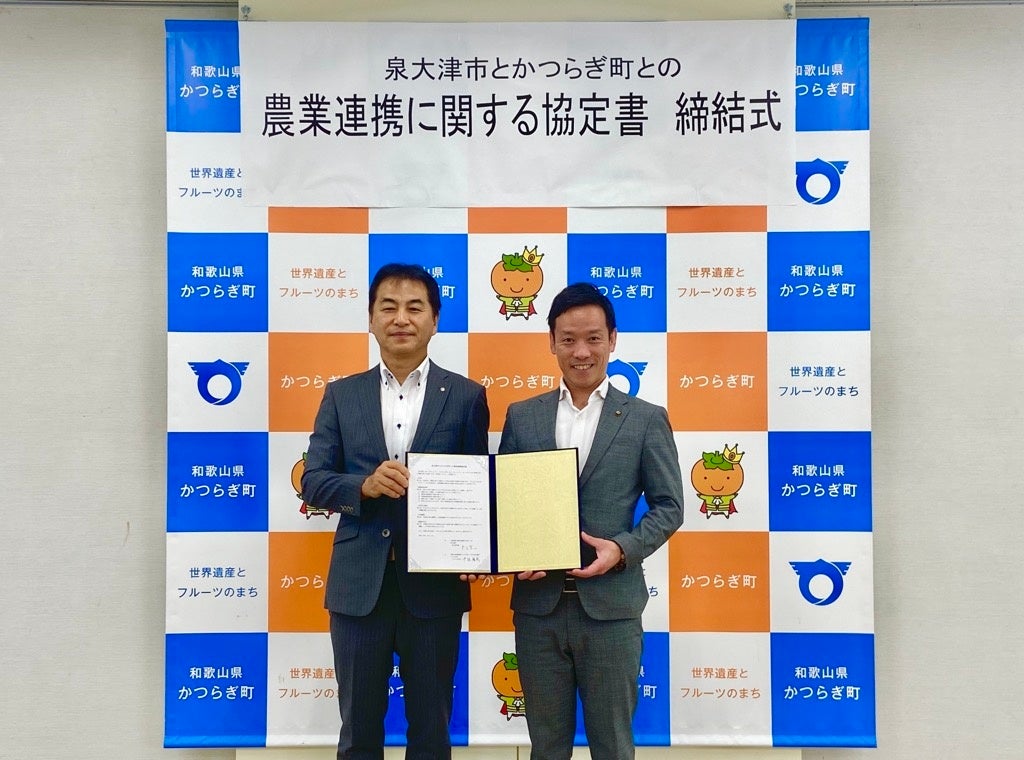 泉大津市(市長:南出賢一)とかつらぎ町(町長:中阪雅則)は、令和6年10月1日に「農業を通じた連携による持続可能なまちづくり」など4項目にわたる農業連携協定を締結。