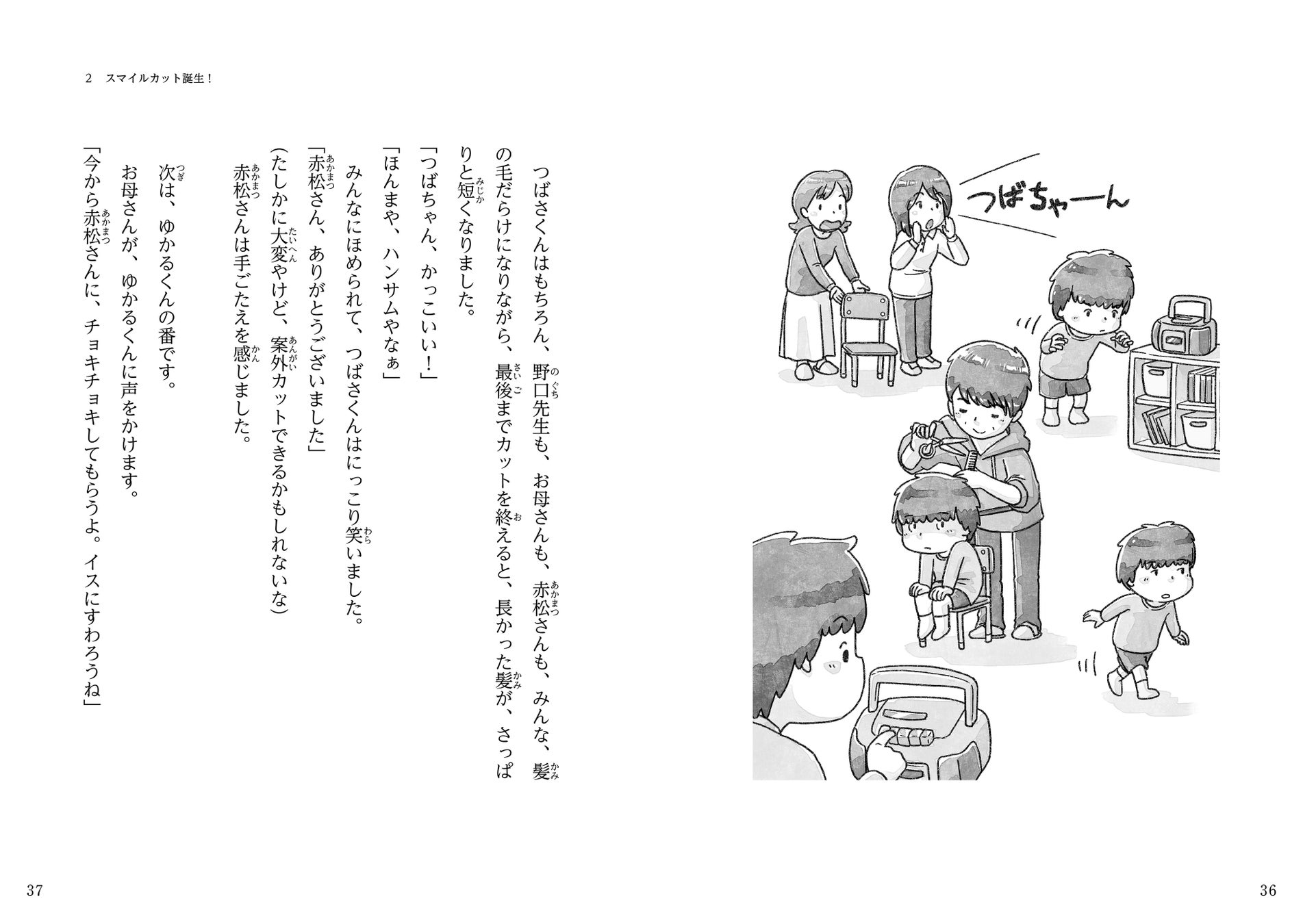 子どもが大すきな赤松さんは、美容師の技術をもって、髪を切ることが苦手な子どものためのヘアカット「スマイルカット」を立ち上げました。多くの人の協力を得て、スマイルカットは活動の輪を広げ、今では困っている多くの子どもの力になっています。きっと、読者の子どもたちにとっても、自分に何ができるのか、何をしたいのか、考えるきっかけになることでしょう。