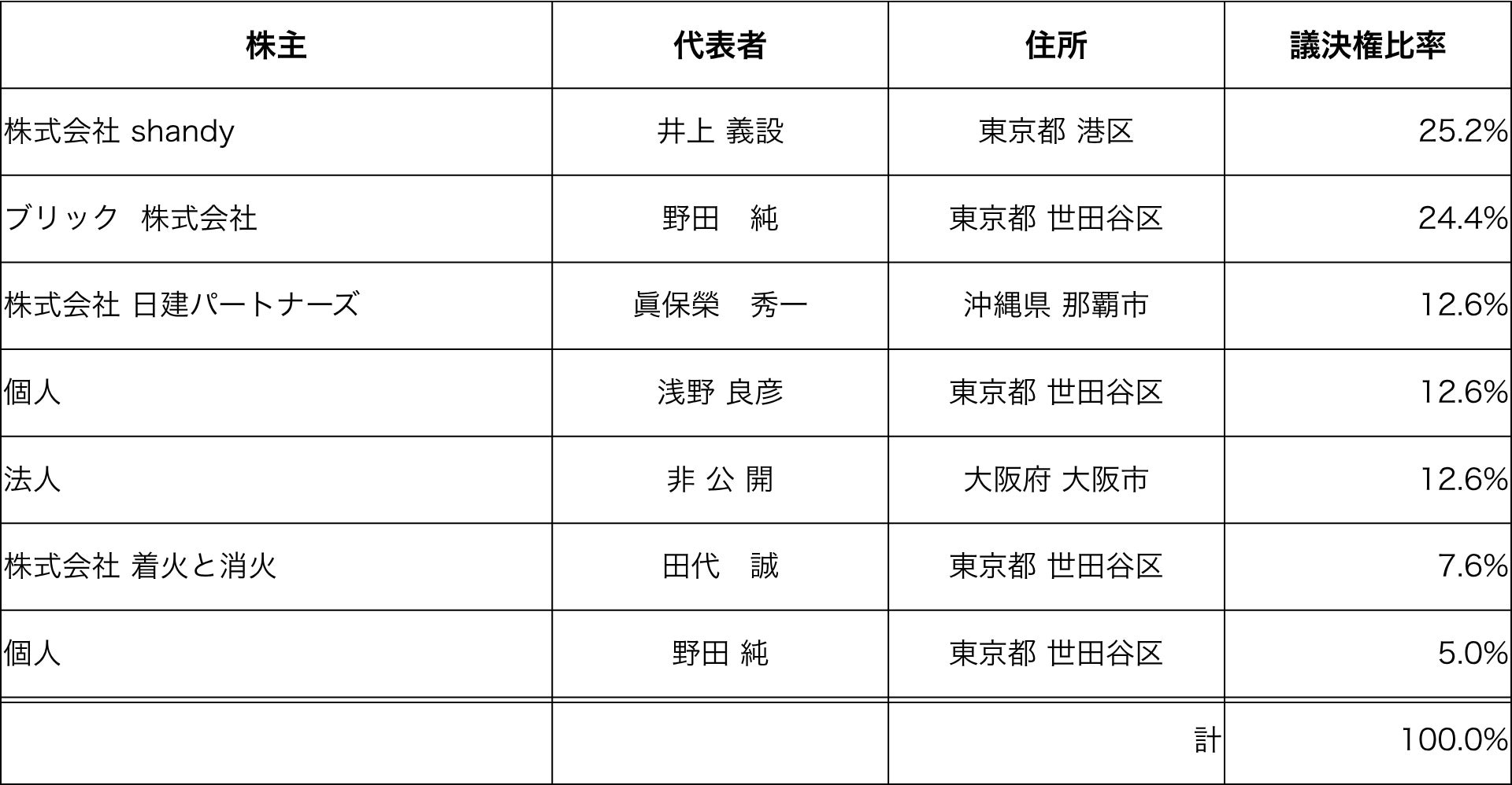株主および議決権比率は、以下の通りです。
