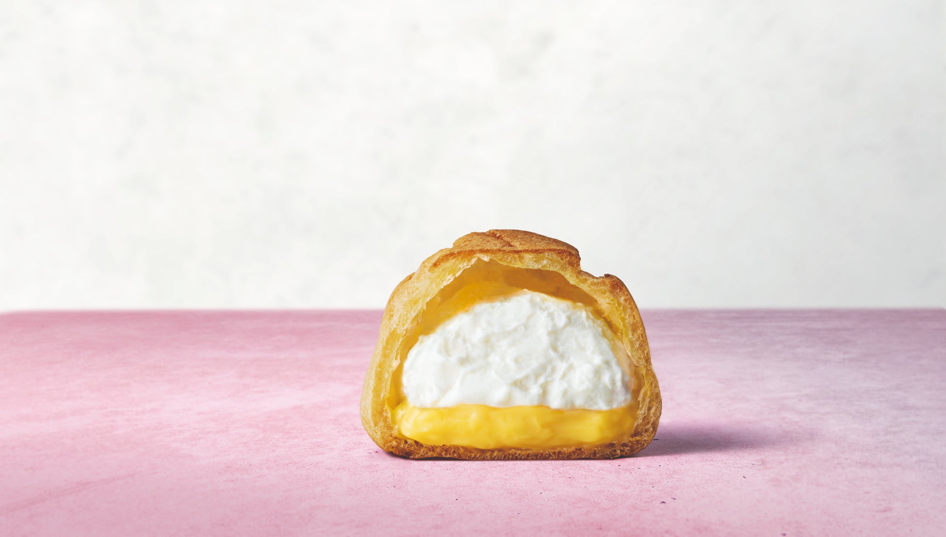 クリームの味わいを最大限に引き立てる、口どけの良いシュー生地を追求。使用する小麦粉の種類を見直し、より軽い食感で、クリームとの一体感を生み出すシュー生地に改良しました。