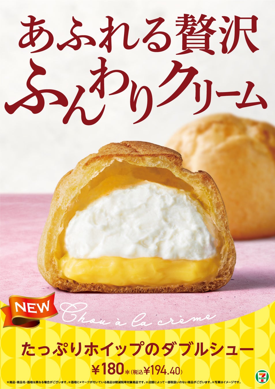株式会社セブン‐イレブン・ジャパン(本社:東京都千代田区、代表取締役社長:永松 文彦)は、大人気スイーツ「たっぷりホイップのダブルシュー」を、4月15日(火)~より順次リニューアル発売します。