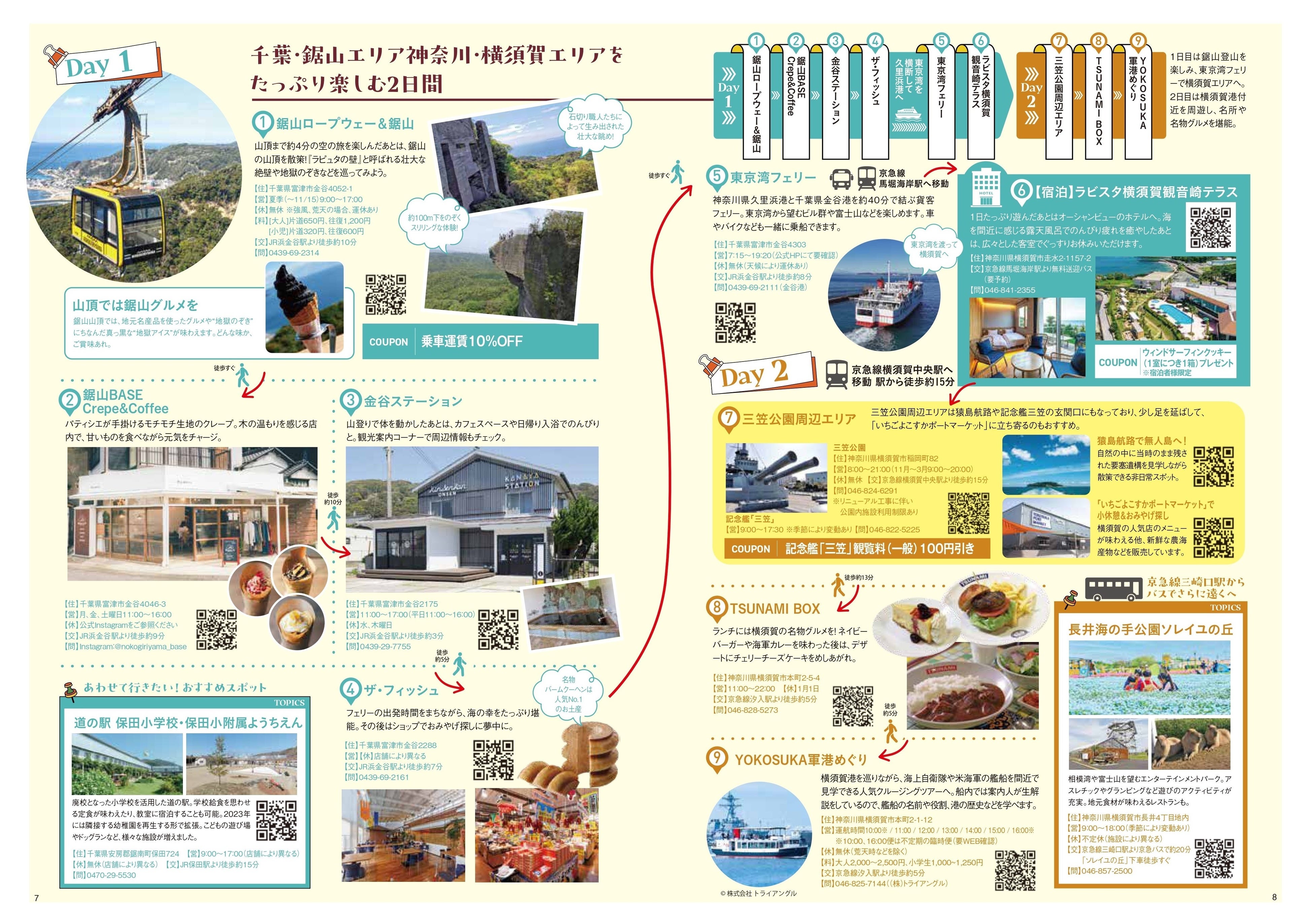 ・7~8ページ … 千葉・鋸山エリア神奈川・横須賀エリアをたっぷり楽しむ2日間