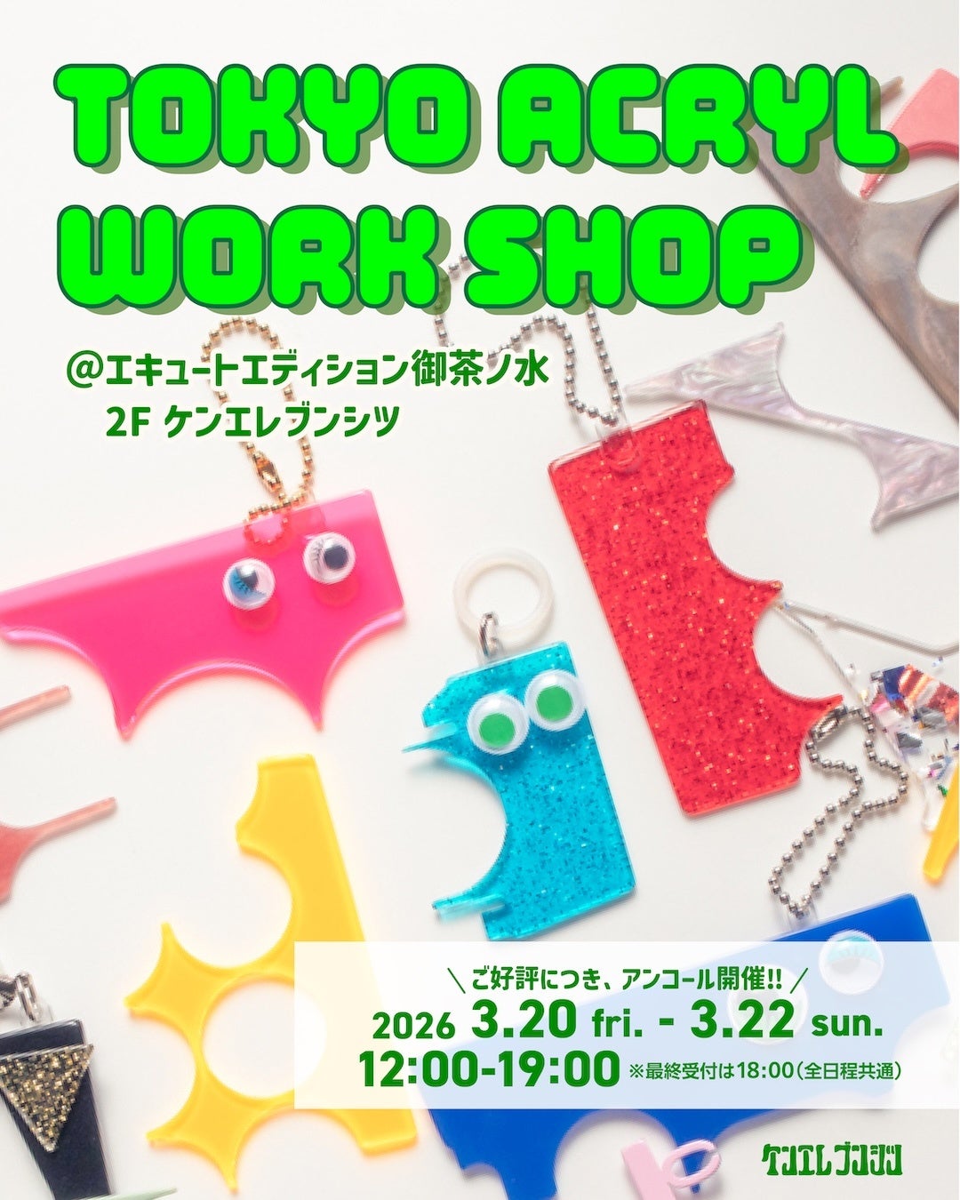 アート雑貨メーカーの株式会社ケンエレファント(本社:東京都千代田区、代表取締役社長:石山 健三)が運営する御茶ノ水の旗艦店『ケンエレブンシツ』では、有限会社三幸のブランド・TOKYO ACRYLによるポップアップイベント 『TOKYO ACRYL POPUP』を、2026年3月20日(金)~4月28日(火)の会期にて開催いたします。