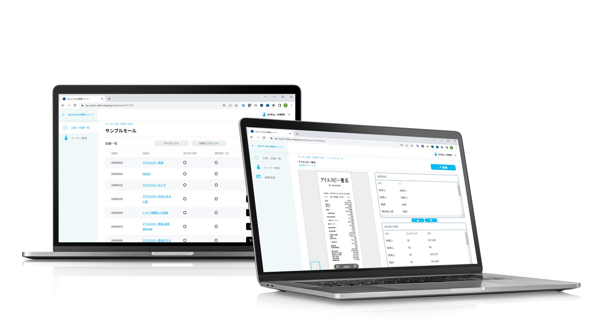 ※「QuickData精算レシート」「レシピタ!」「レシデータ」はアイエスピーの特許技術を利用したサービスです。