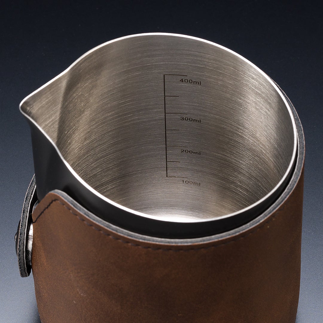 本製品は、エスプレッソやドリップコーヒーなどに合わせる、フォームミルクやスチームミルクを作るのに便利なミルクピッチャーです。ラテアートでの使用時は、ハンドルが無い分、注ぎ口と持ち手の距離が近く、細かな表現が可能。ココアや抹茶など、ミルクと合わせたアレンジドリンクの攪拌用にと、便利に幅広く使えます。