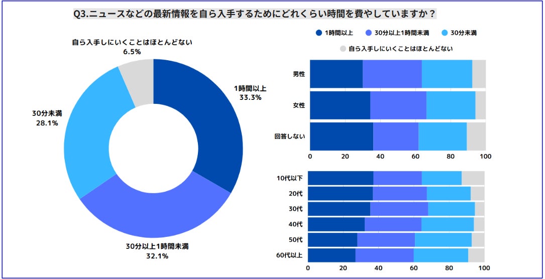また、回答者の間で年齢層や性別に大きな違いはなく、最新情報を入手する行為が多数の人々にとって日常的なものであることが示されています。