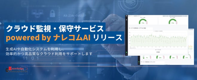 株式会社ナレッジコミュニケーション(本社:千葉県市川市、代表取締役:奥沢 明、以下当社)は、これまでに提供してきたクラウド環境向けの監視・保守サービスのラインナップを拡充し、新たに「自動監視保守プラン」および「有人監視保守プラン」を加えて「クラウド監視・保守サービス powered by ナレコムAI」として提供を開始いたします。