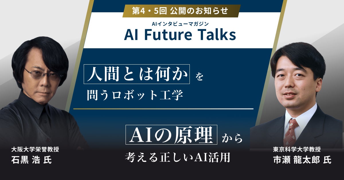 AI/DXコンサルティング企業のデフィデ株式会社(東京都港区赤坂2-4-6、代表取締役:山本 哲也)は、日本を代表するAI研究者へのインタビューシリーズ「AI Future Talks」の第4回・第5回を公開しました。