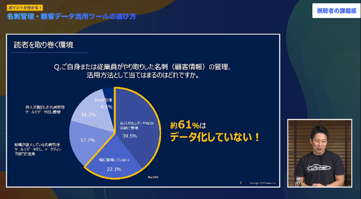 ITmedia編集部がアンケート調査した、名刺管理に関する現状を踏まえて解説しており、とてもわかり易い動画となっています(ITmedia提供)