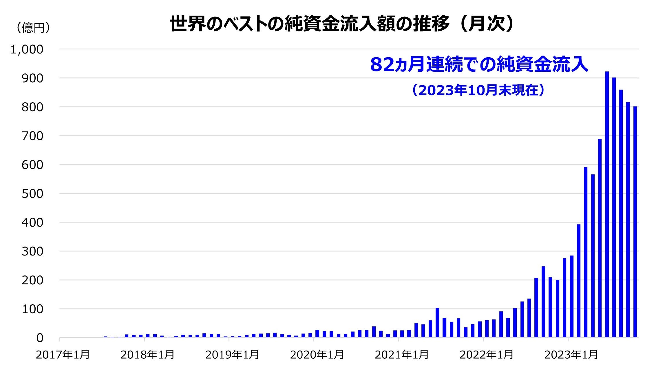 2017年1月から82ヵ月連続での純資金流入を記録。 <為替ヘッジなし>(毎月決算型)は2023年1-10月国内公募投信において純資金流入第1位