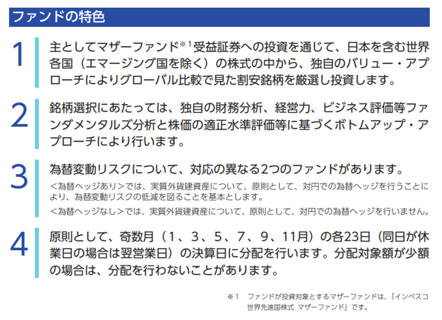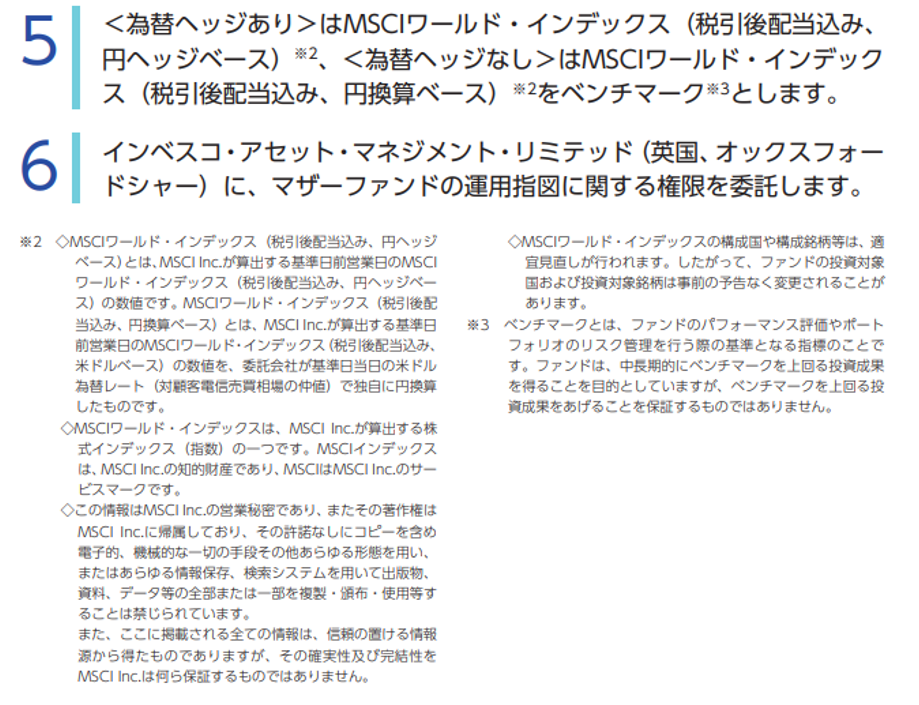 当資料はインベスコ・アセット・マネジメント株式会社が設定・運用する投資信託についてお伝えすることのみを目的として作成したプレスリリースであり、金融商品取引法に基づく開示書類ではありません。当資料は信頼できる情報に基づいて作成されたものですが、その情報の確実性あるいは完結性を表明するものではありません。また、過去の運⽤実績は、将来の運⽤成果を保証するものではありません。当資料で詳述した分析は、⼀定の仮定に基づくものであり、その結果の確実性を表明するものではありません。分析の際の仮定は変更されることもあり、それに伴い当初の分析の結果と差異が⽣じる場合があります。当資料の中で記載されている内容、数値、図表、意⾒などは特に記載がない限り当資料作成時点のものであり、今後予告なく変更されることがあります。ファンドの購⼊のお申し込みの場合には、投資信託説明書(交付⽬論⾒書)を販売会社よりあらかじめまたは同時にお渡ししますので、必ず内容をご確認の上、ご⾃⾝でご判断ください。投資信託は預⾦や保険契約と異なり、預⾦保険機構または保険契約者保護機構の保護の対象ではありません。また、登録⾦融機関は投資者保護基⾦には加⼊しておりません。ファンドのお取引に関しては、⾦融商品取引法第37条の6の規定(いわゆるクーリングオフ)の適⽤はありません。ファンドは、実質的に国内外の値動きのある有価証券など(外貨建資産には、為替変動リスクもあります。)に投資しますので、基準価額は変動します。したがって、元本が保証されているものではありません。これらの運⽤による損益はすべて受益者の皆様に帰属します。