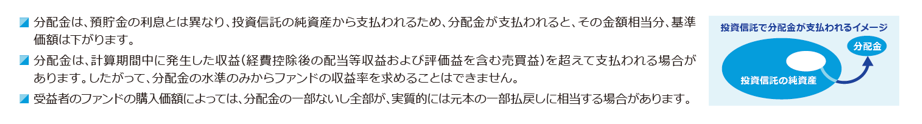 ■分配金は、預貯金の利息とは異なり、投資信託の純資産から支払われますので、分配金が支払われると、その金額相当分、基準価額は下がります。