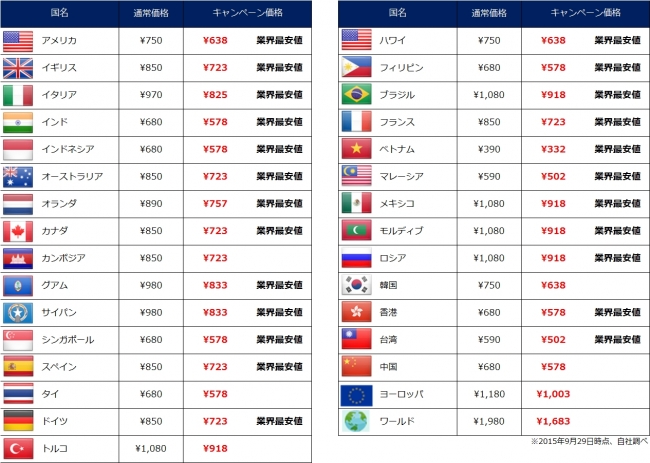 3. アメリカ・ハワイ・台湾・ベトナムなど24カ国で業界最安値