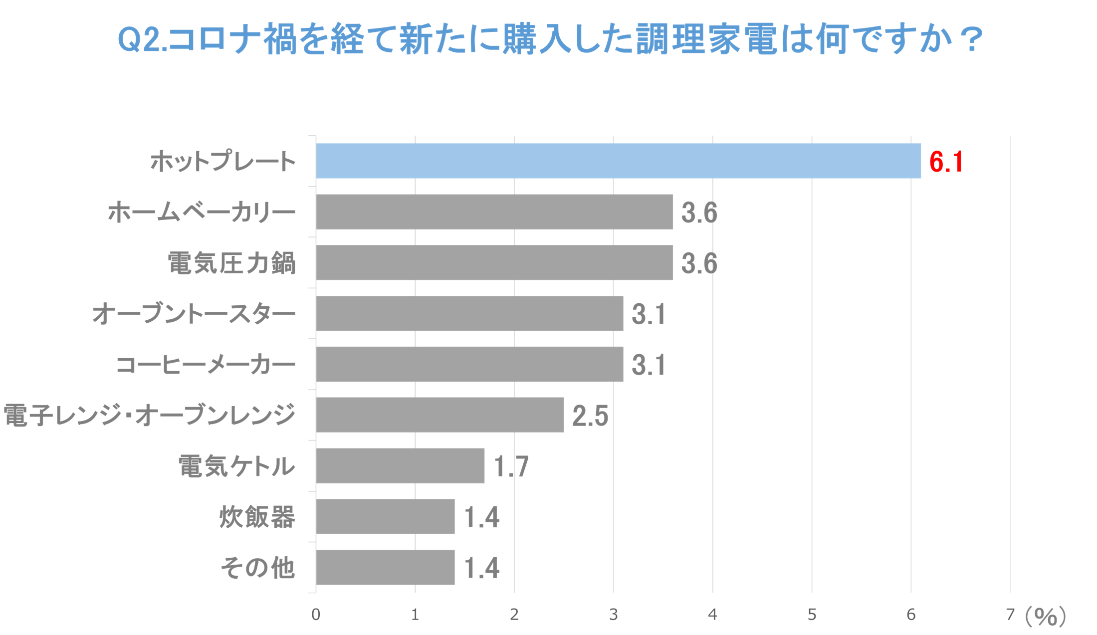 - ①「コロナ禍に購入した調理家電」第1位はホットプレート。おうち時間への導入がカギ