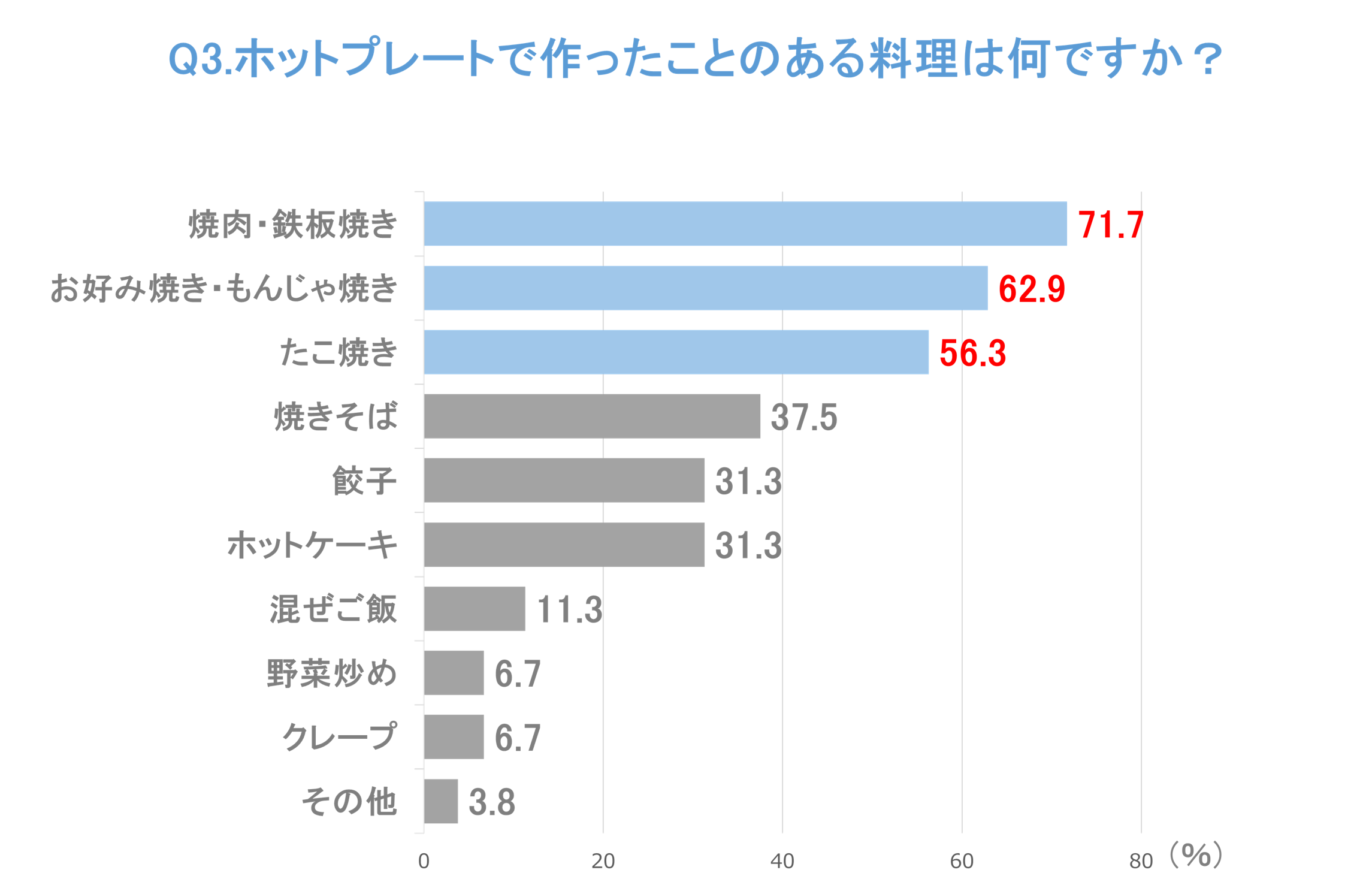 - ②ホットプレートでよく作る料理TOP3は「焼肉」「お好み焼き」「たこ焼き」 卓上を囲んで複数人で1つの料理を楽しめる活用方法が人気