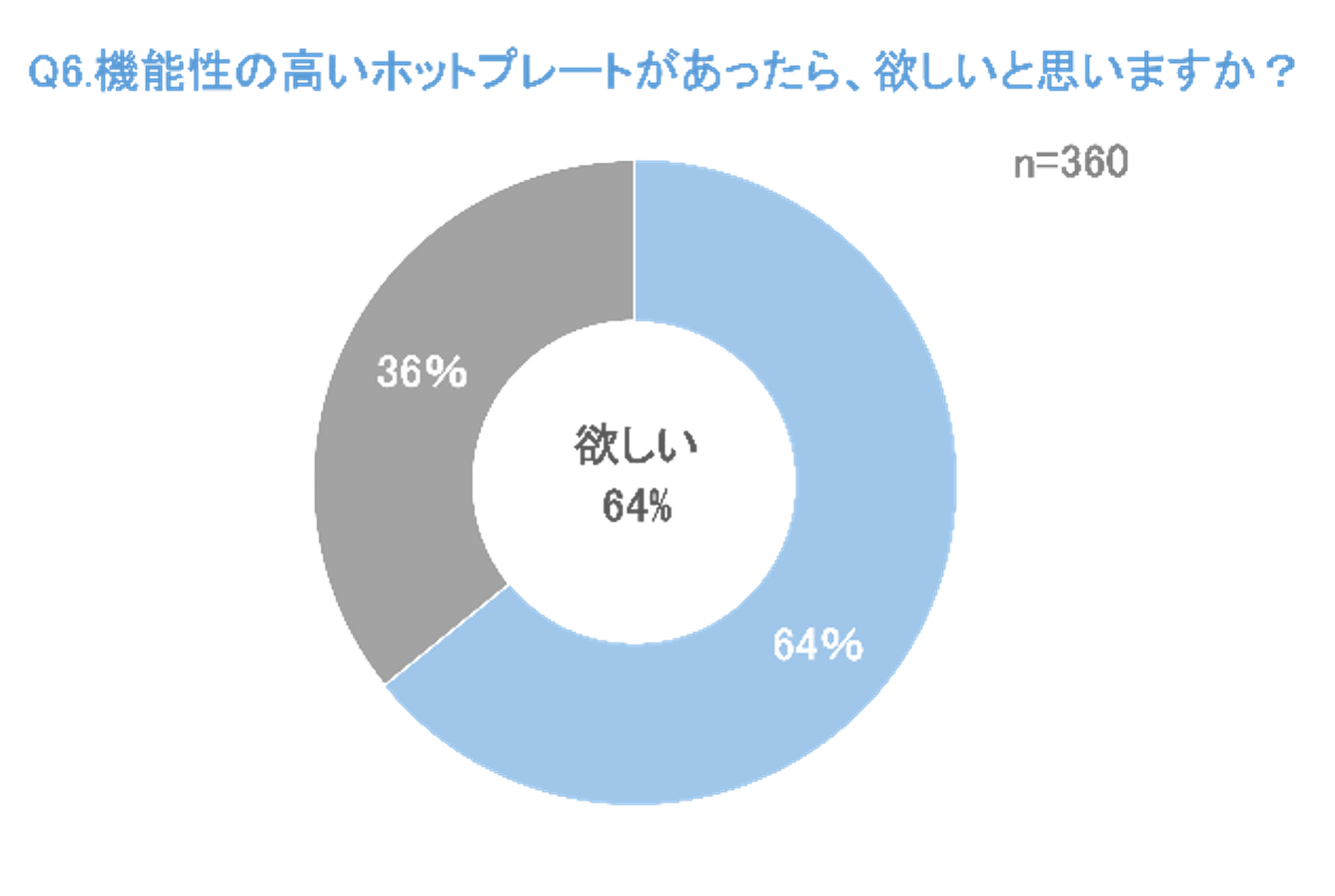 - ④6割以上の人が「機能性と調理の幅を両立したホットプレート」が欲しいと回答!毎日使えるコンパクトサイズが理想