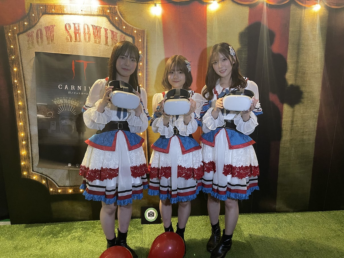 大塚七海:「VRを付けた瞬間に自分がどこにいるかわからなくて、ITの中の世界に入り込んでしまったみたいでみんなで腰を抜かしちゃって、ホントに怖かったんですけど3人だからこそ楽しめました!」